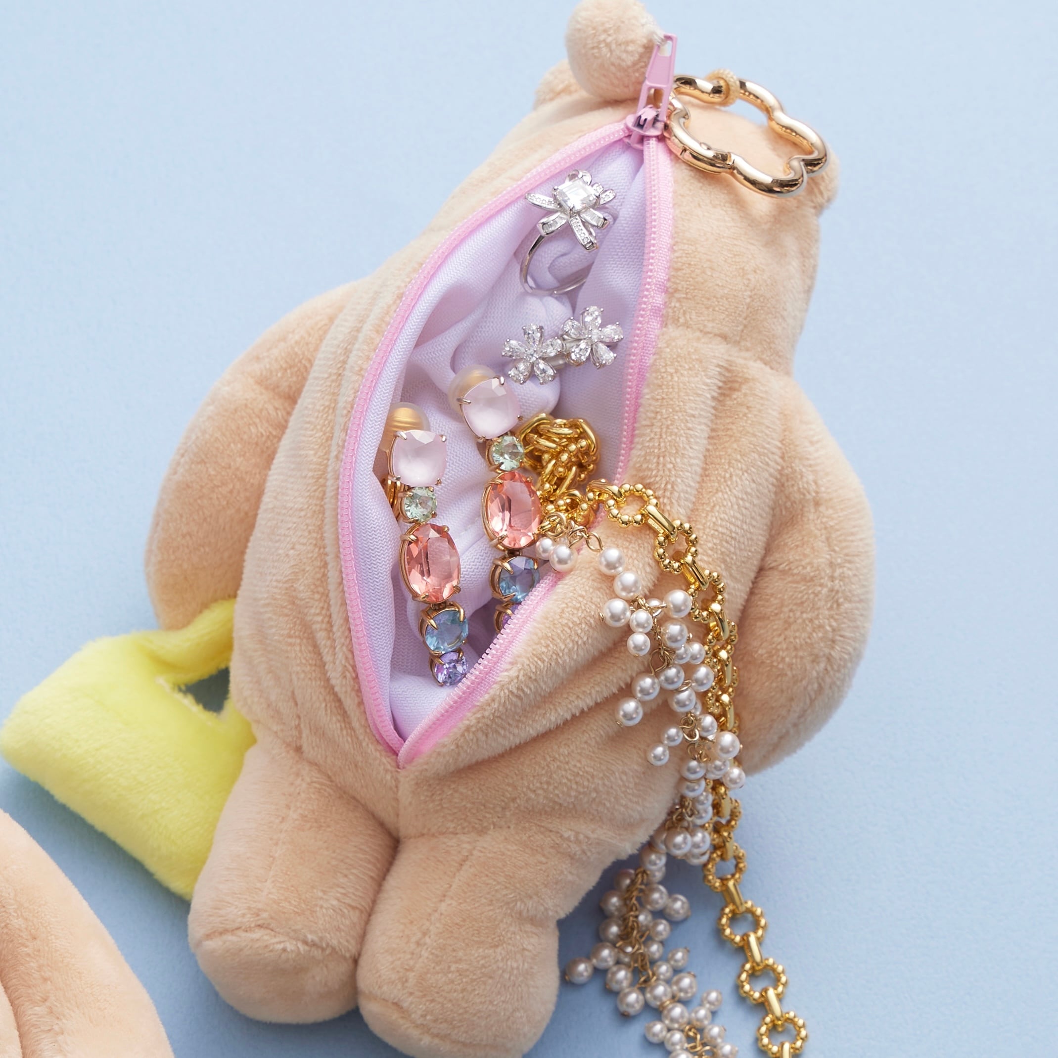 背中のジッパーを開けジュエリーを収納することができます◎たっぷりとしたふわふわボディで衝撃からプロテクト。