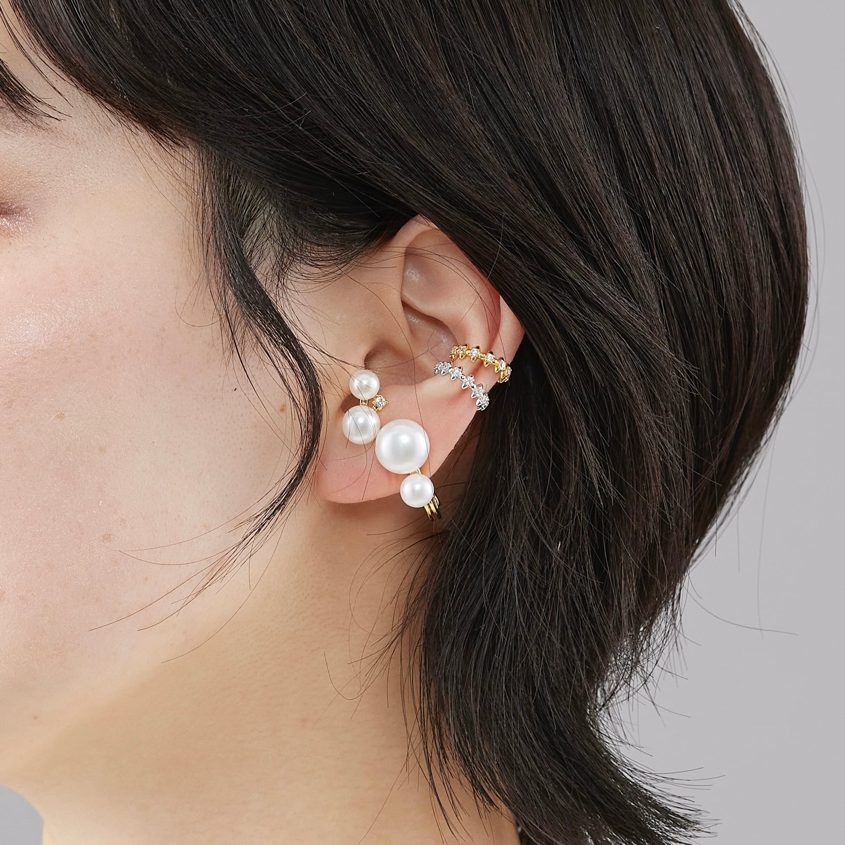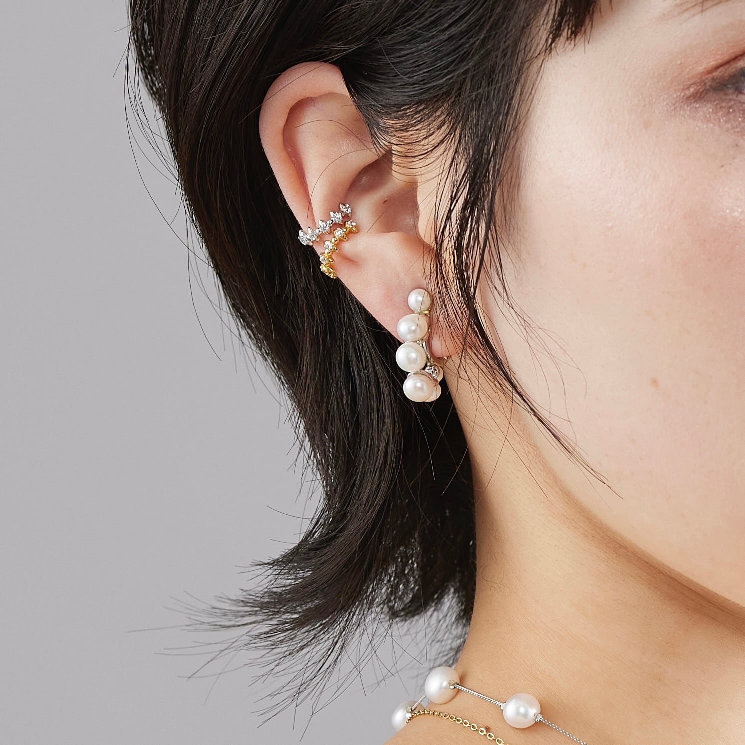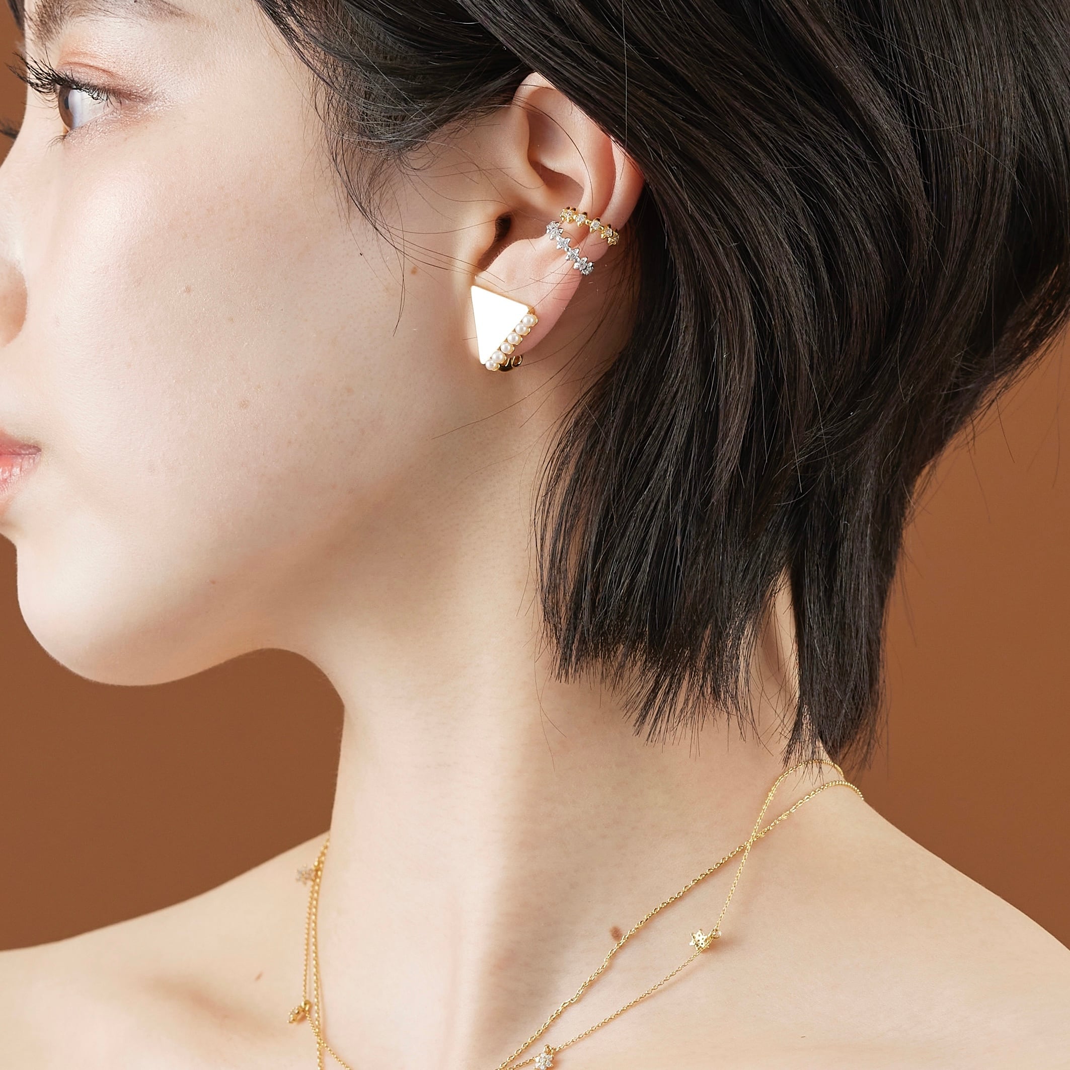 直径が小さなイヤーカフはピアスやイヤリングとのレイヤードにもピッタリ。