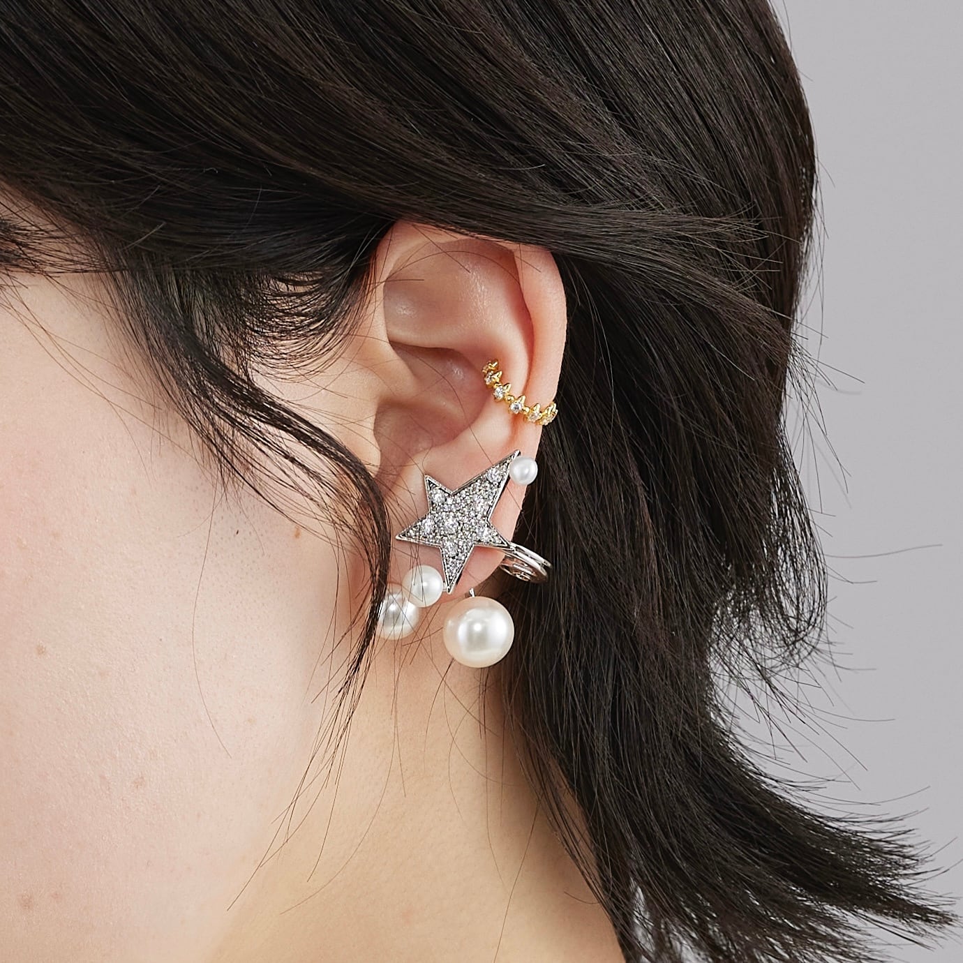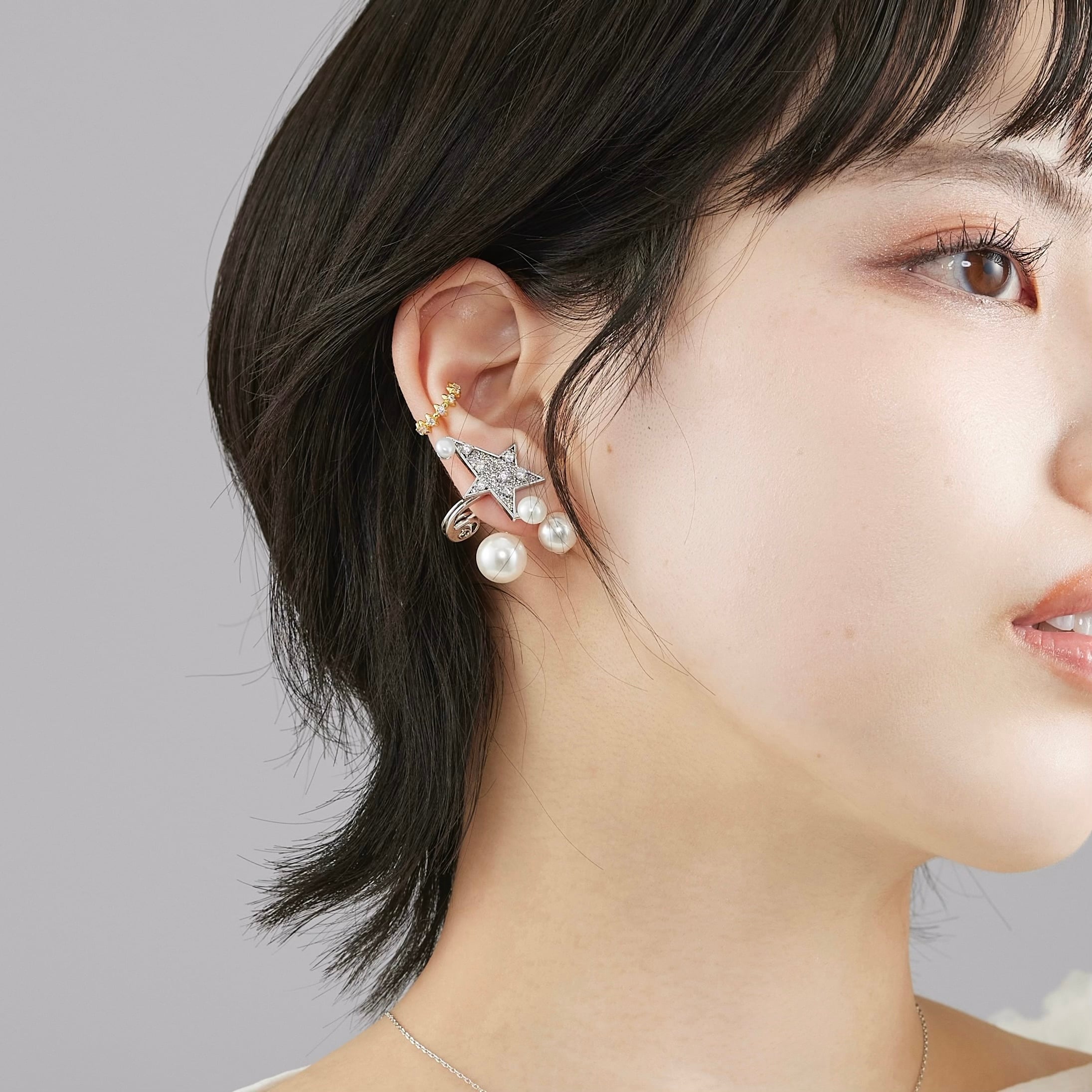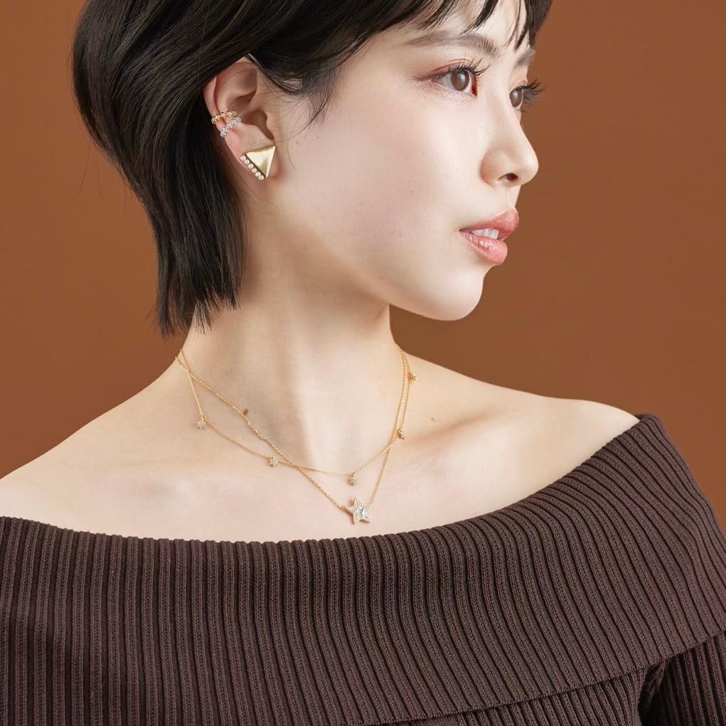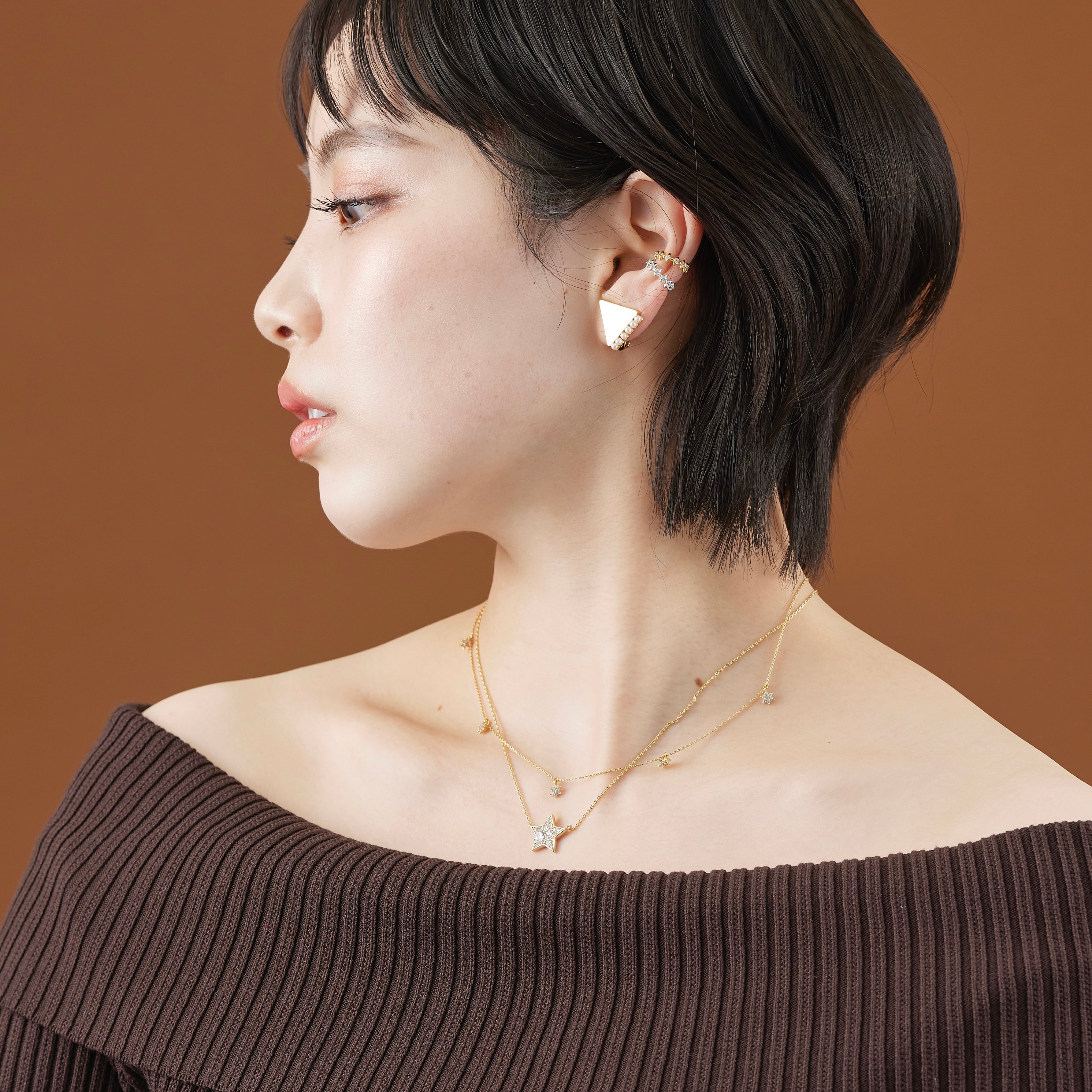 直径が小さなイヤーカフはピアスやイヤリングとのレイヤードにもピッタリ。