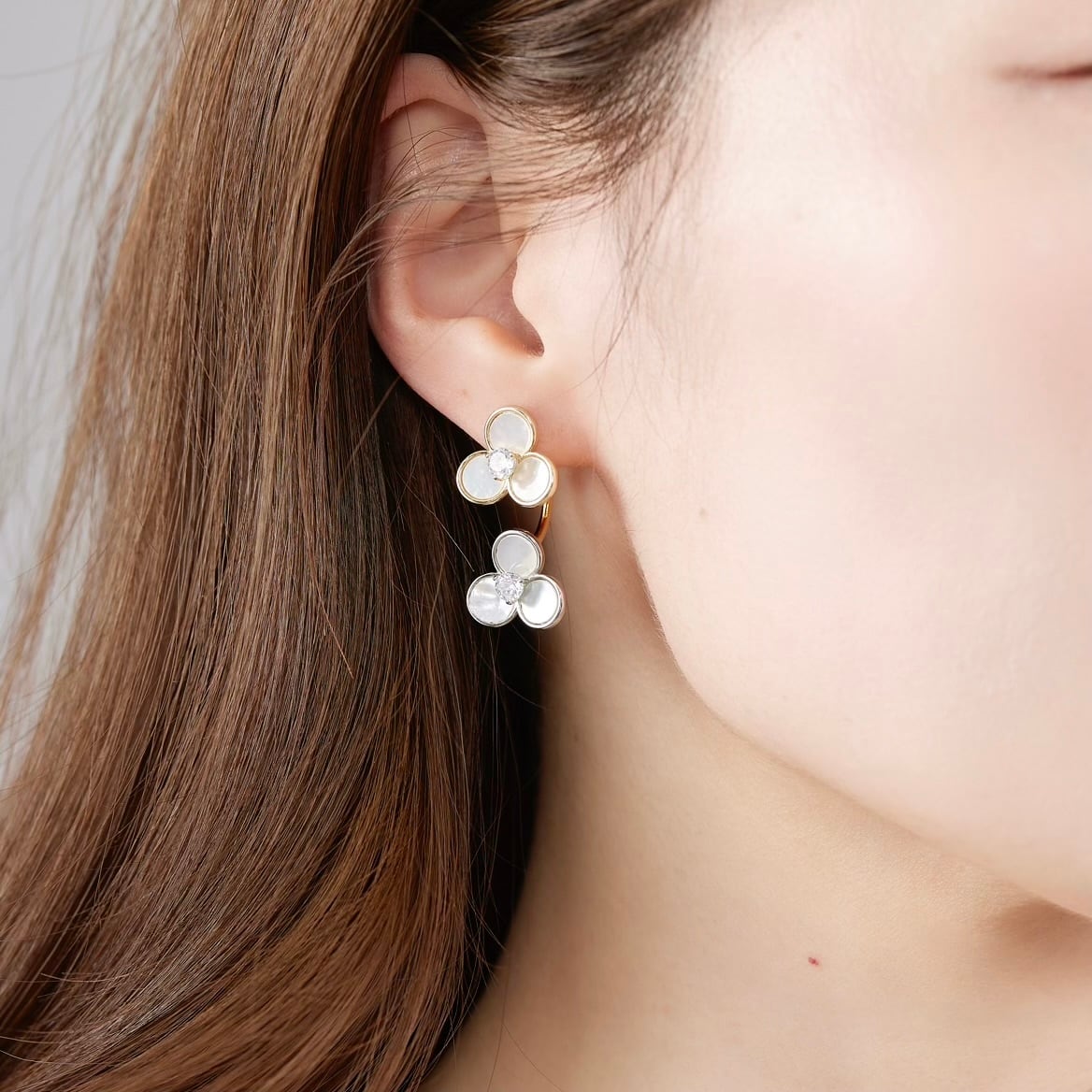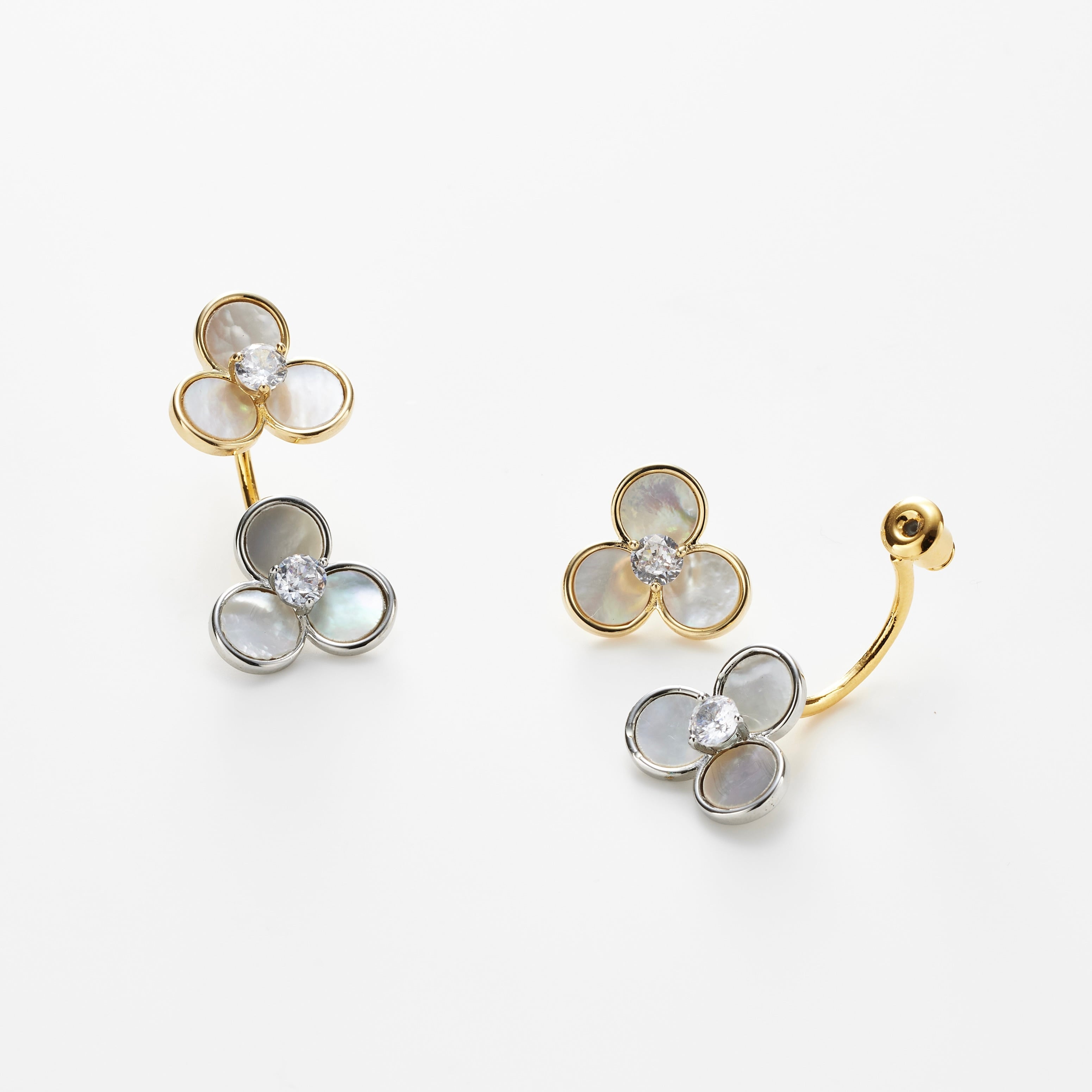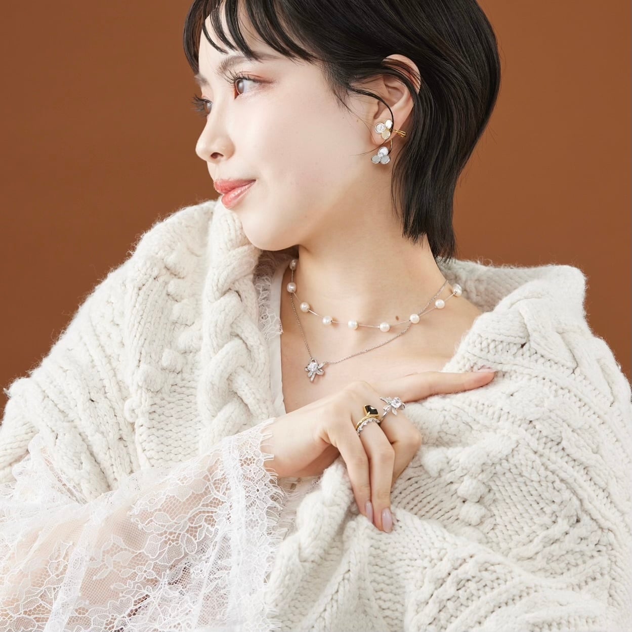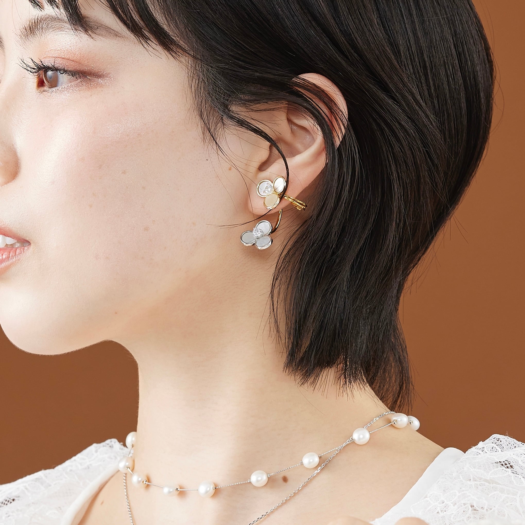 上にはゴールド、下にはシルバーとフラワーモチーフのカラーをMIXしているので他のアクセサリーとの相性も万能◎