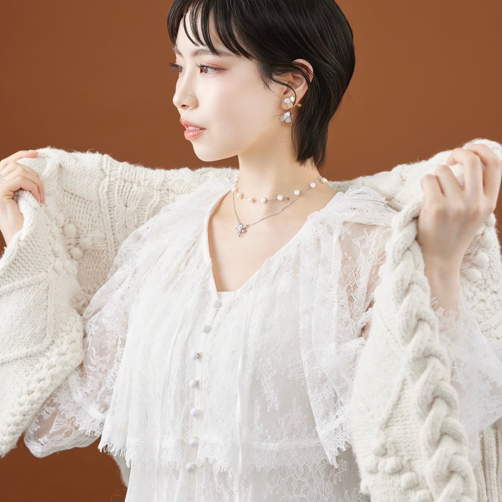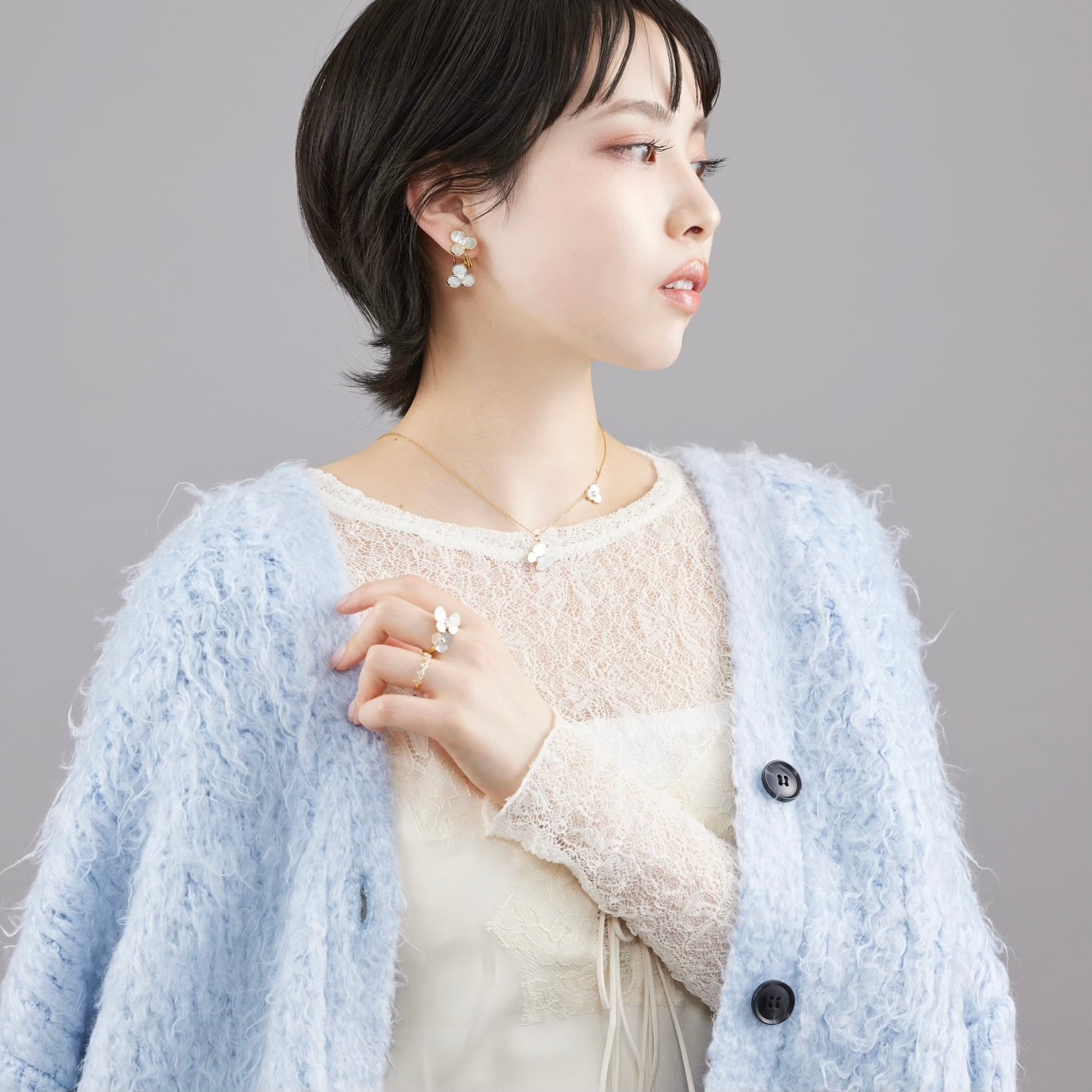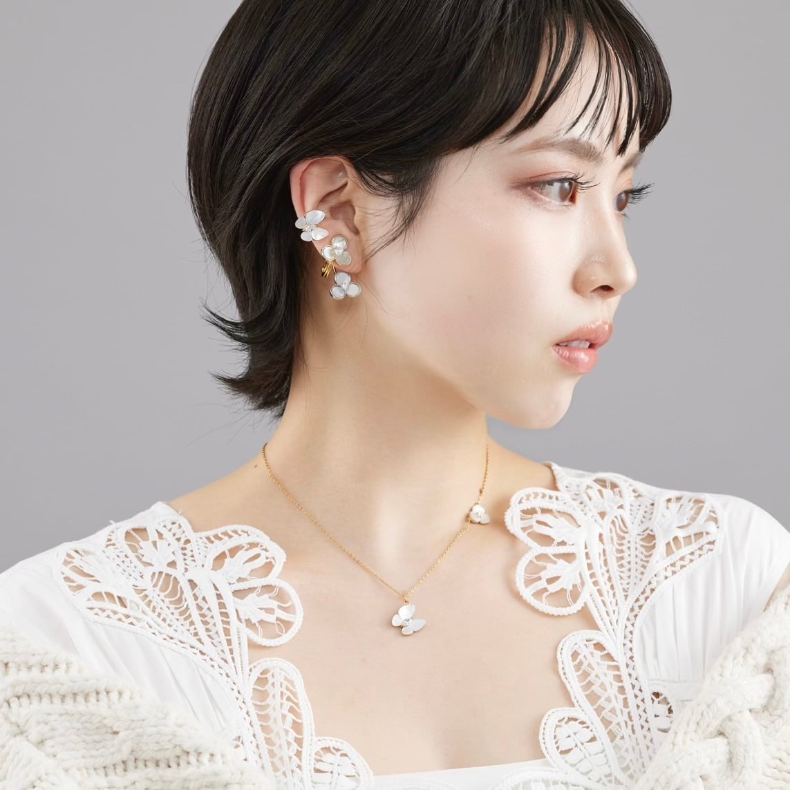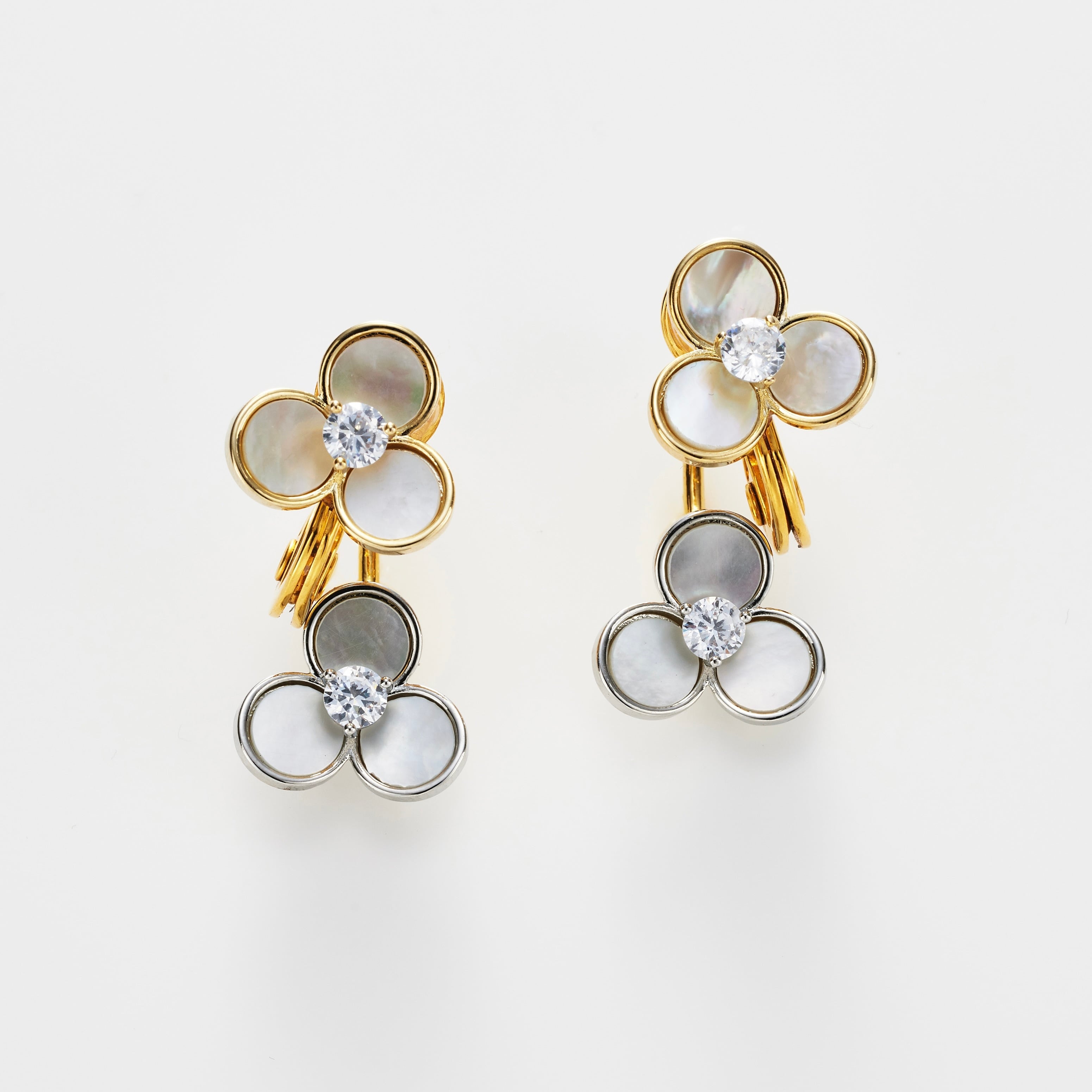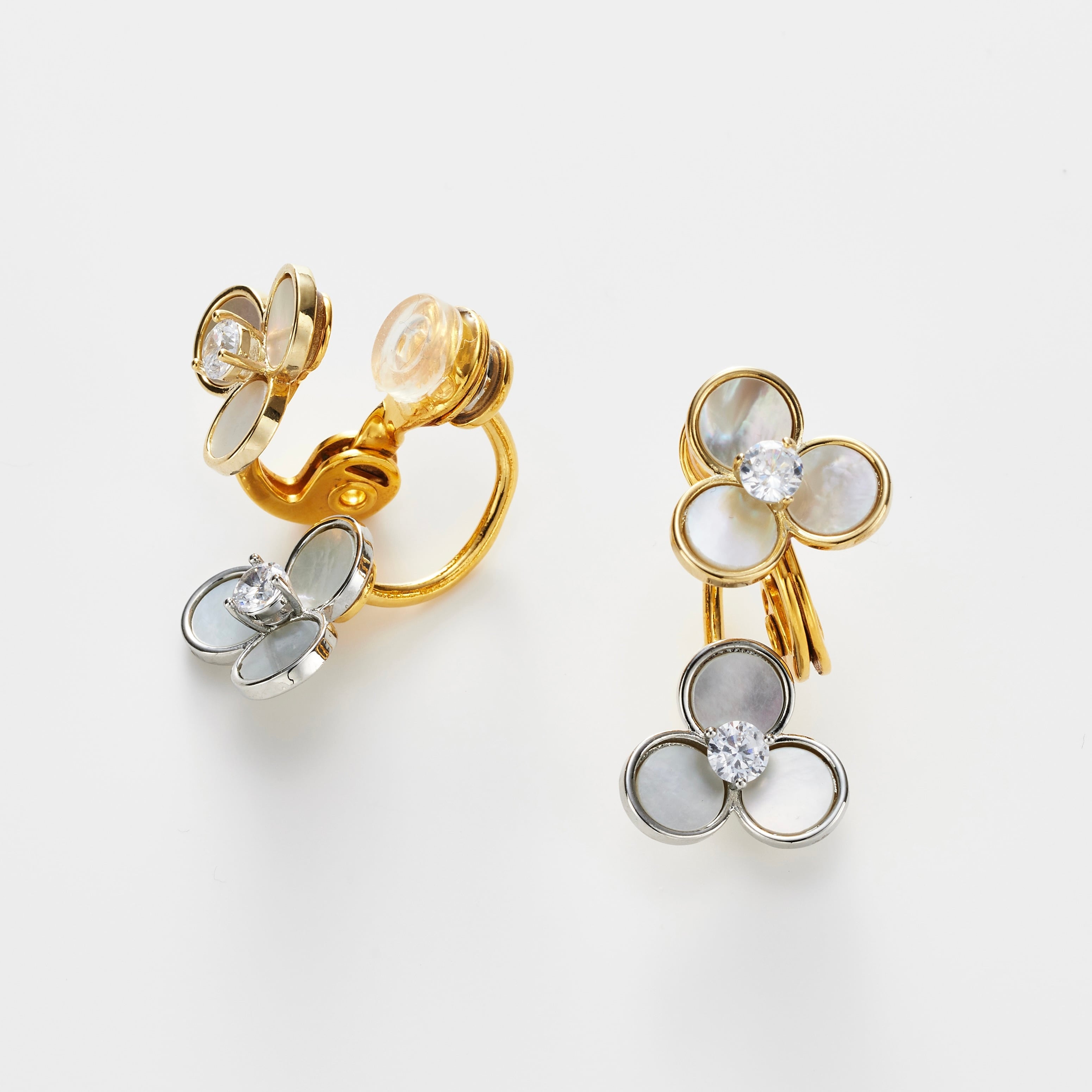 上にはゴールド、下にはシルバーとフラワーモチーフのカラーをMIXしているので他のアクセサリーとの相性も万能◎