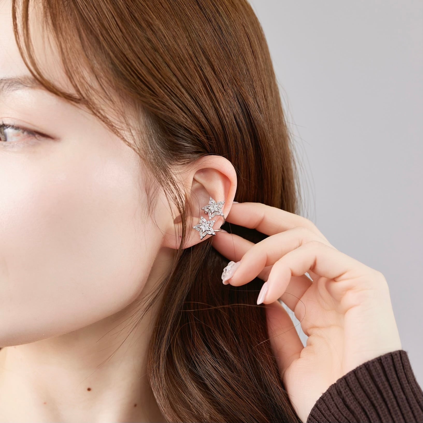 イヤーカフは、耳の薄いカ所から挟み入れると着用しやすくなっております。