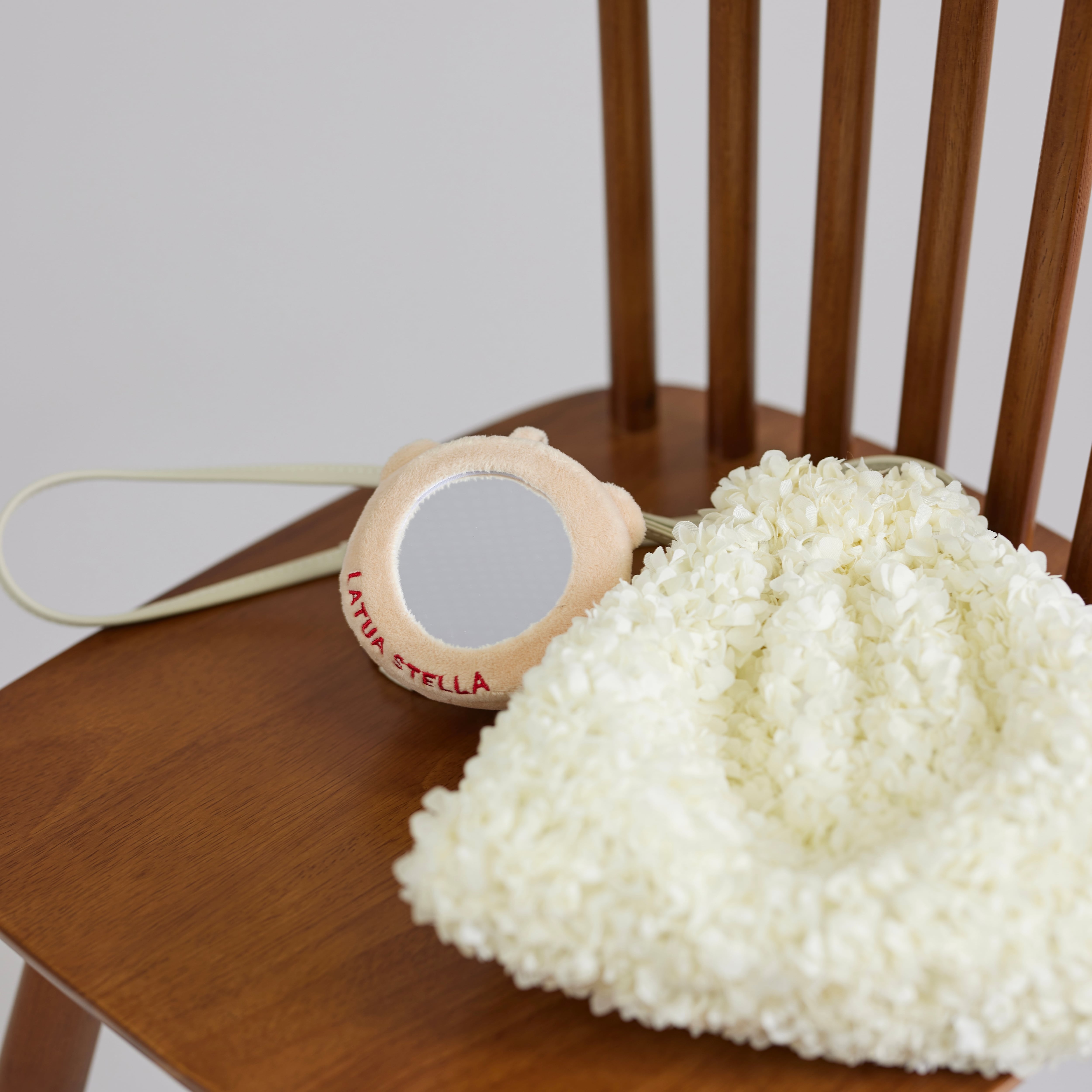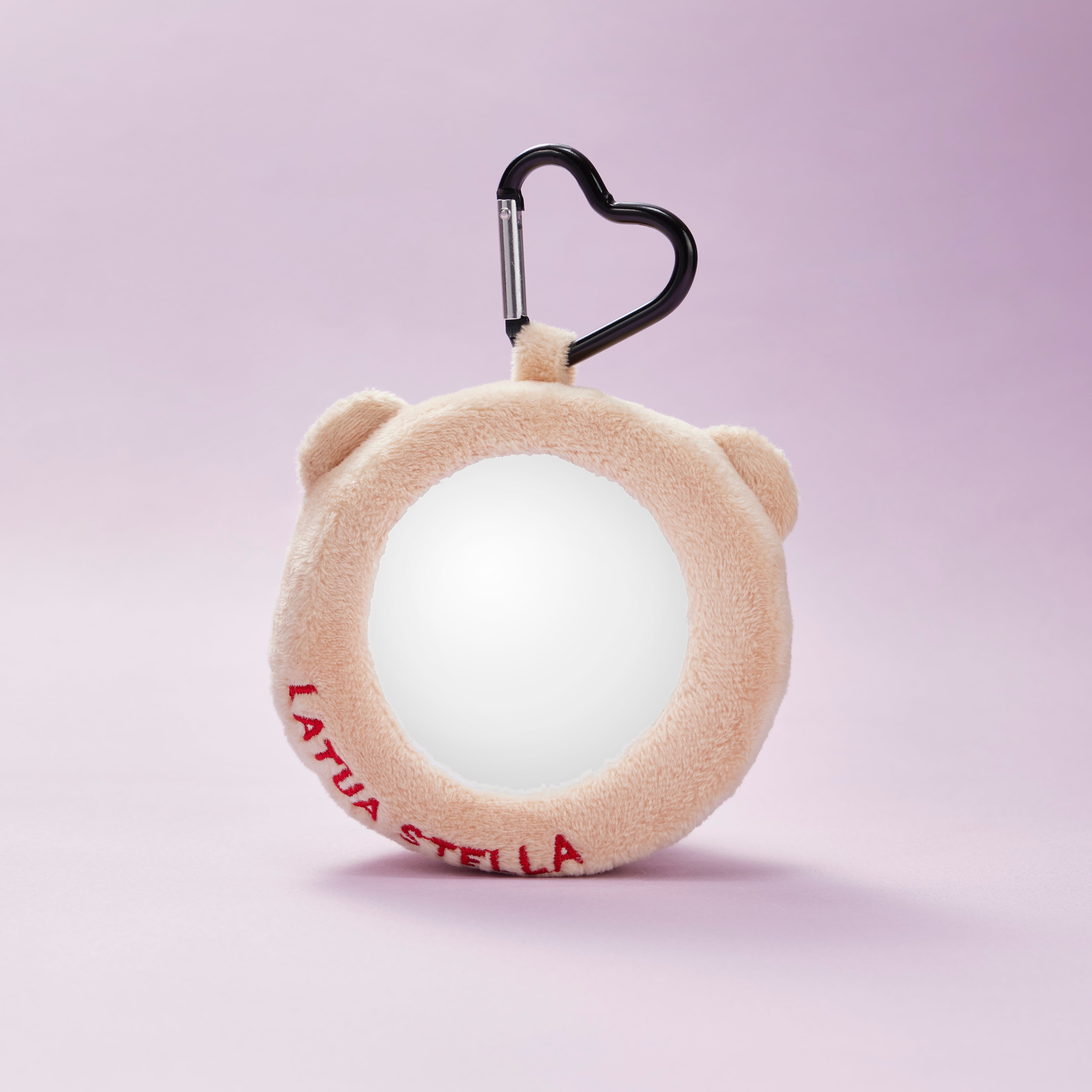 LATUA STELLA のマスコットキャラクター ホワイトベアのくまちゃんがミラーチャームになって登場です♪ 立体感あるフェイスモチーフの裏面が鏡になった便利すぎるぬいぐるみチャーム♪ ハートのカラビナでBAGに外付けできるので、ふとした瞬間鏡が必要な時にすぐ見られて◎ Ж PRODUCT INFORMATION Ж 品番 :202512507 サイズ : 約10cm×9cm 付属 : カラビナ2種