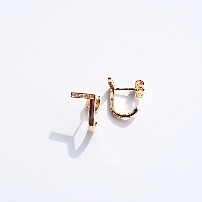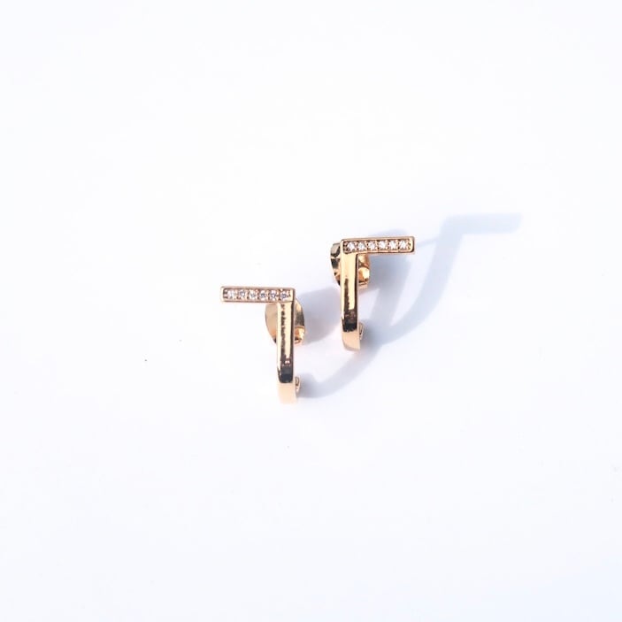 エッジの効いたデザインにジルコニアをあしらった、デイリーユースなデザインピアス。