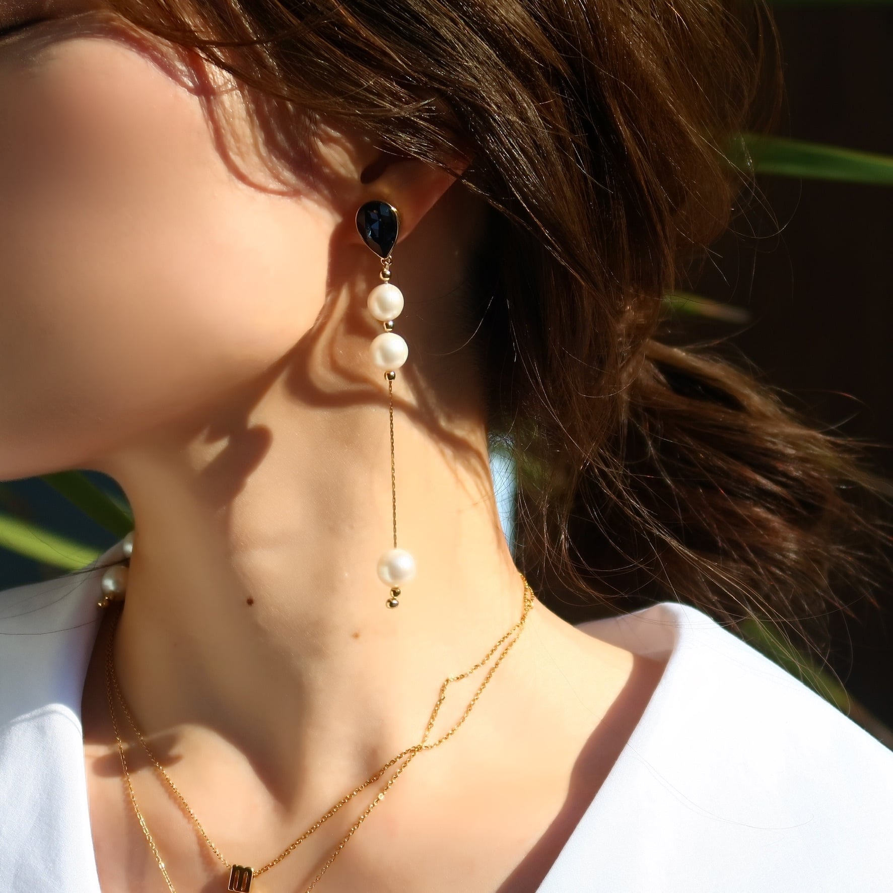 スライドボールを動かすとパールの位置を変えることができるので、お洋服の襟元のボリュームやデザインに合わせてバランスチェンジが可能です。