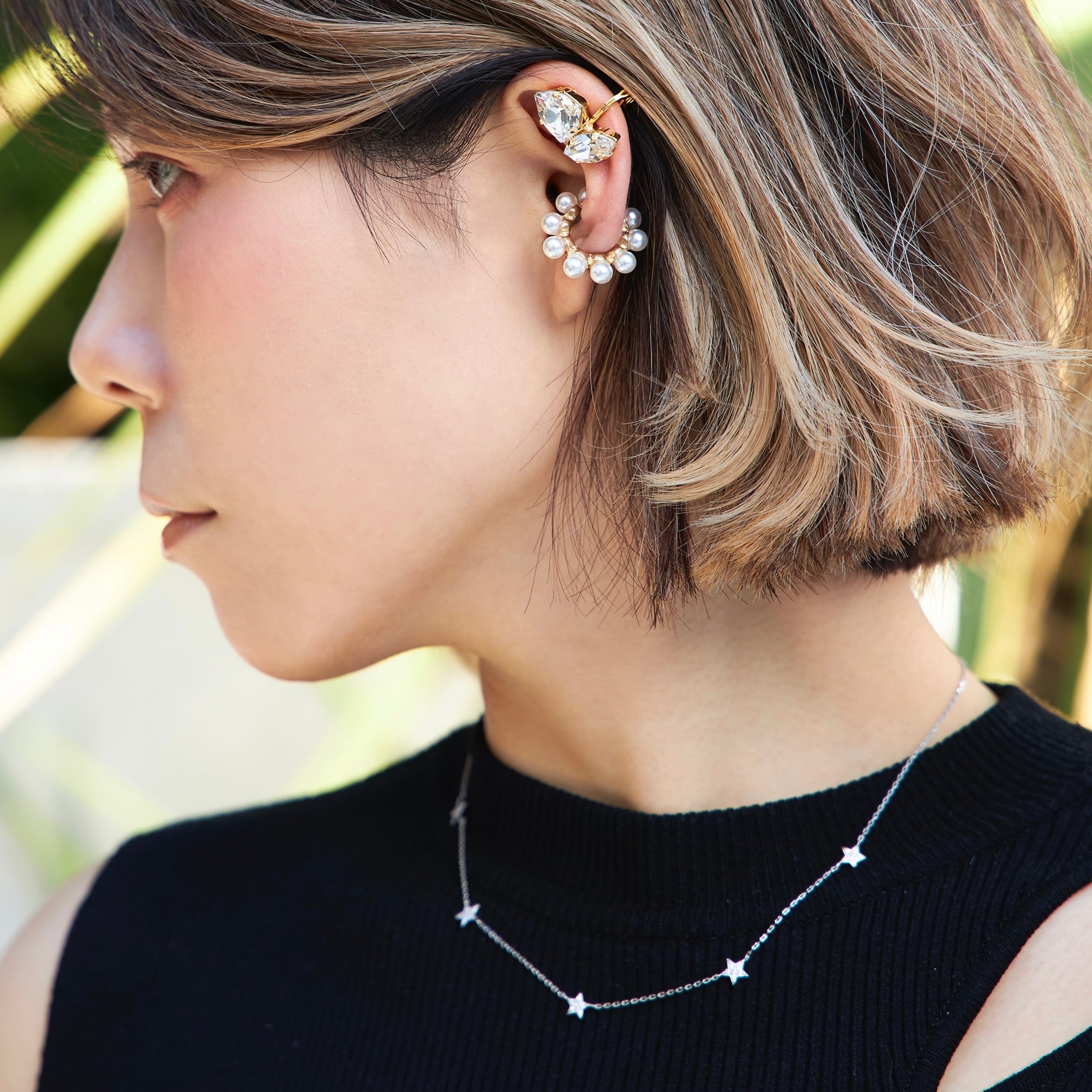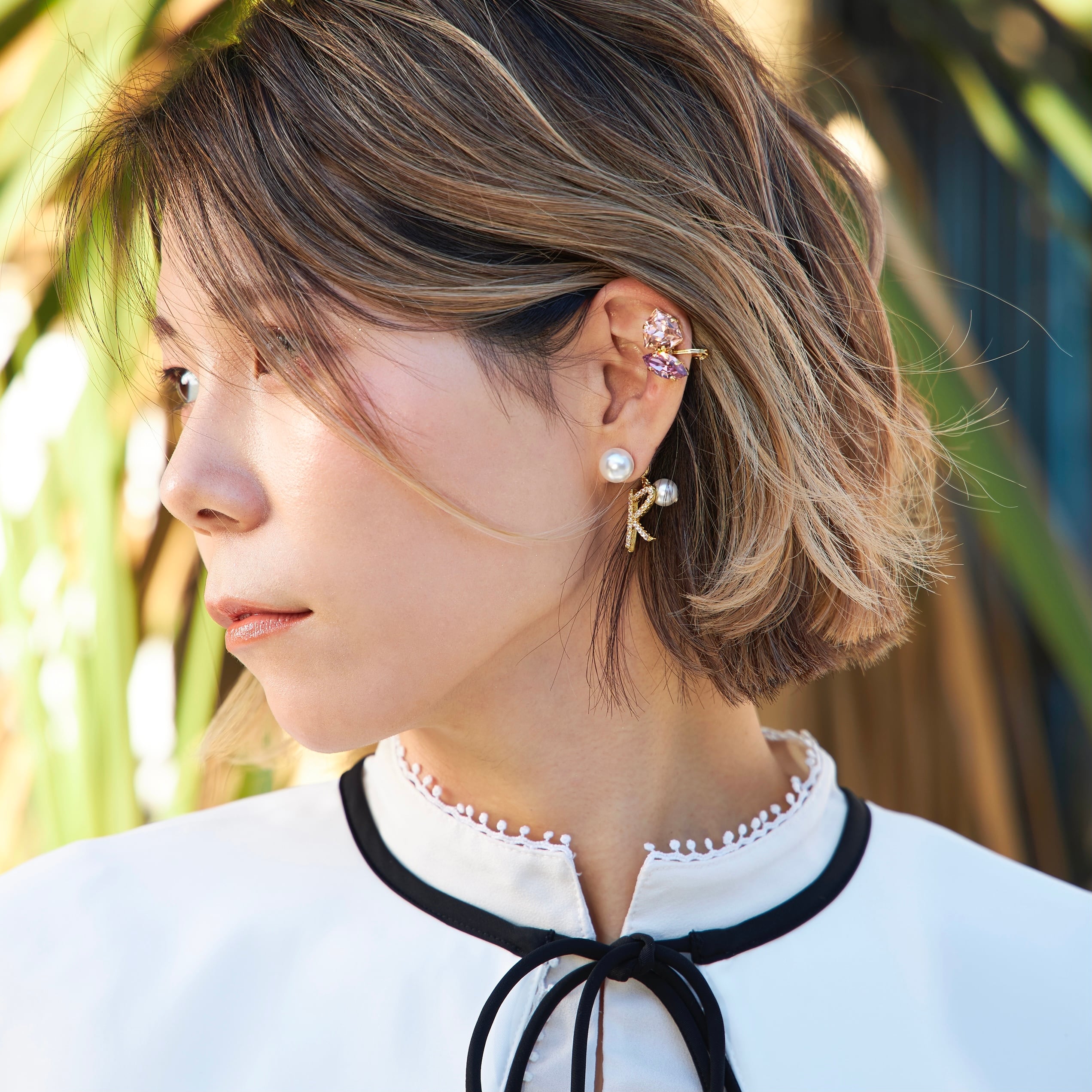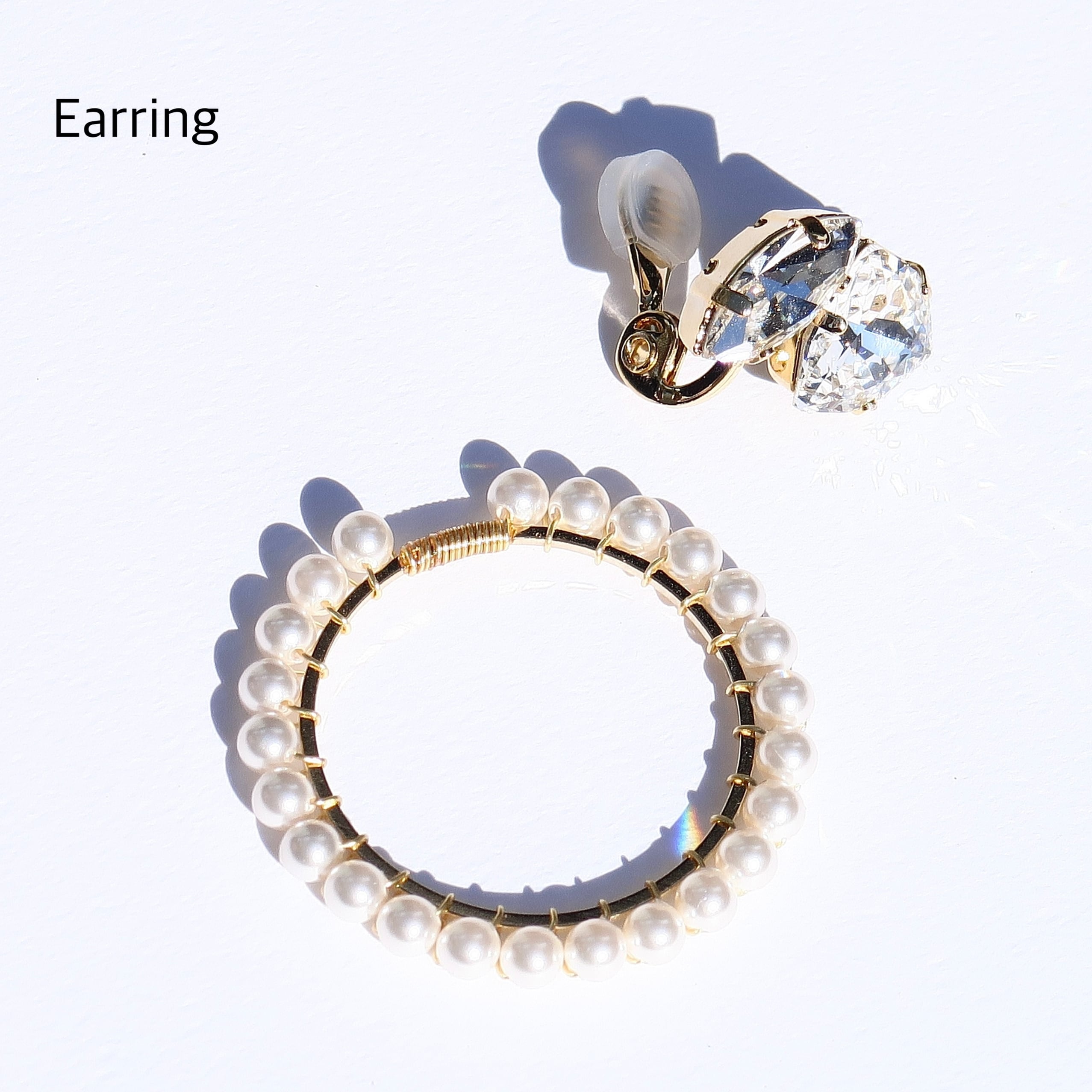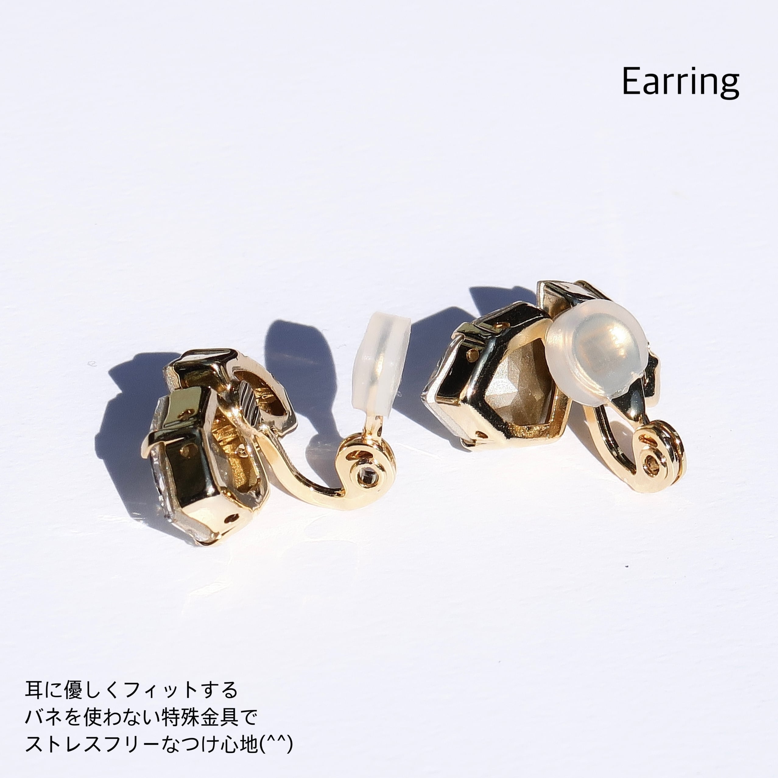 イヤリングには耳が痛くなりにくい調整可能なクリップ式金具を採用。