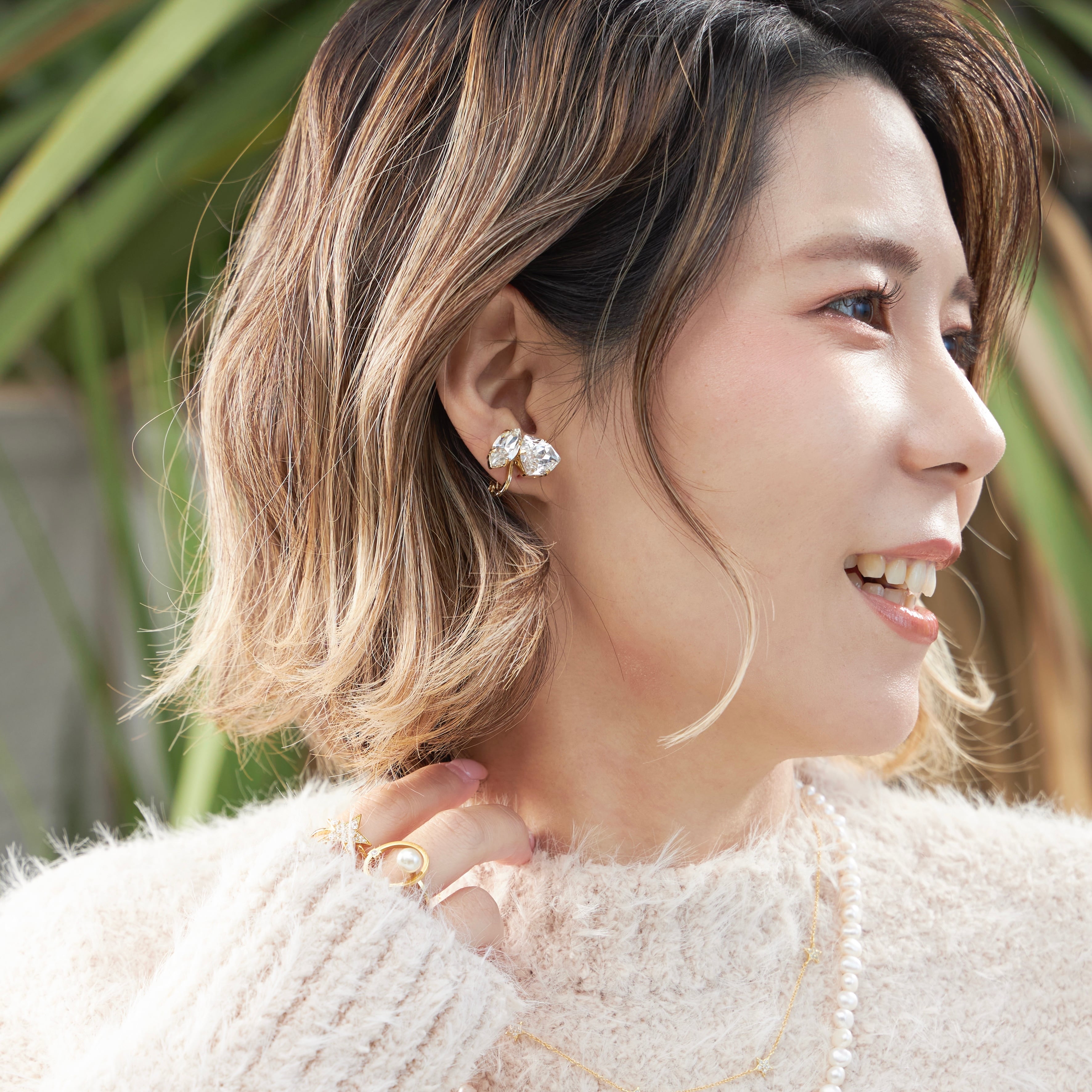 華やかに魅せたい時にはお手持ちのイヤーアイテムとレイヤードすることで、いつもとはがらりと違う印象を楽しむことができます◎