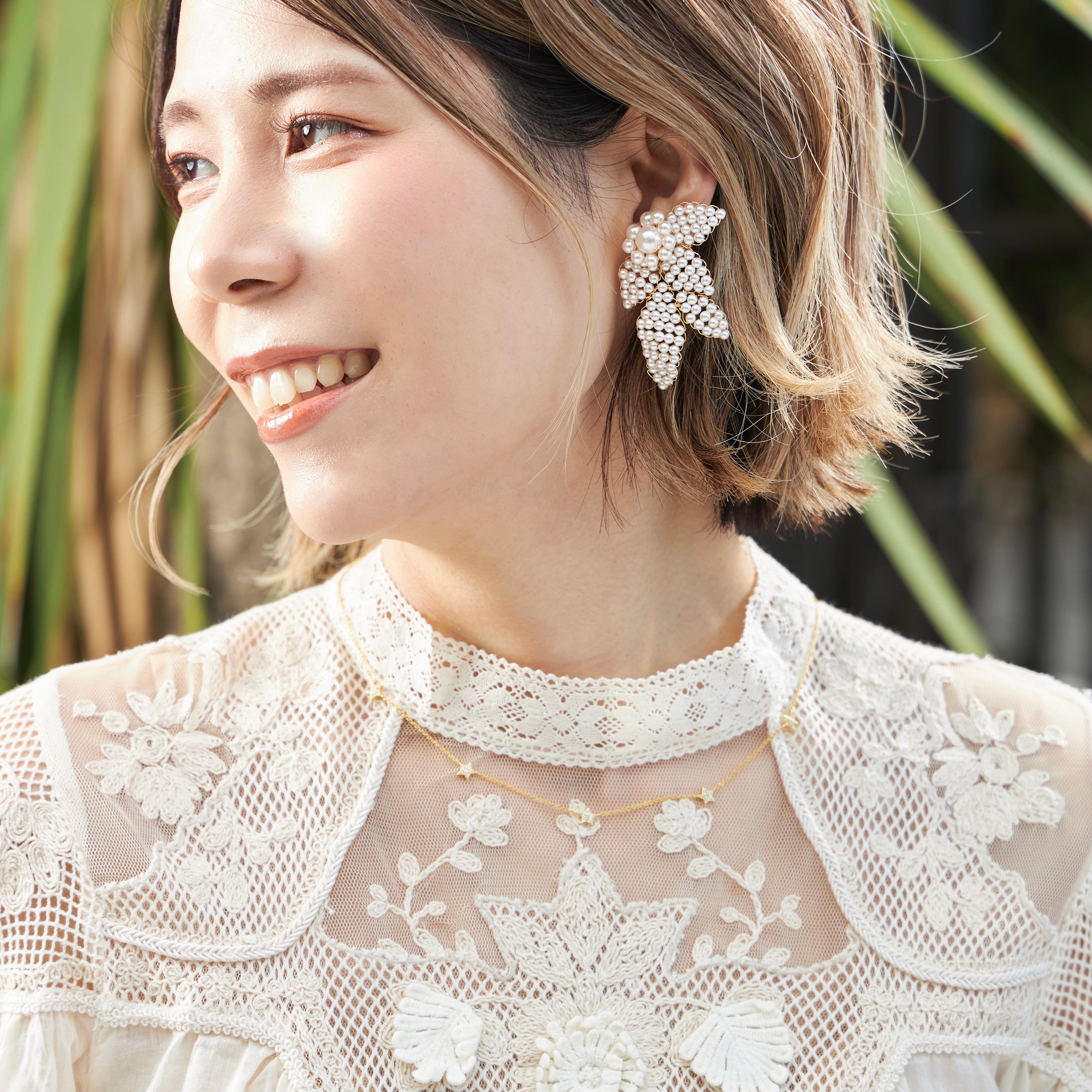 可憐な花のモチーフとスラリと大人びたシルエットが合わさった、特別な日に華を添えるデザインです。