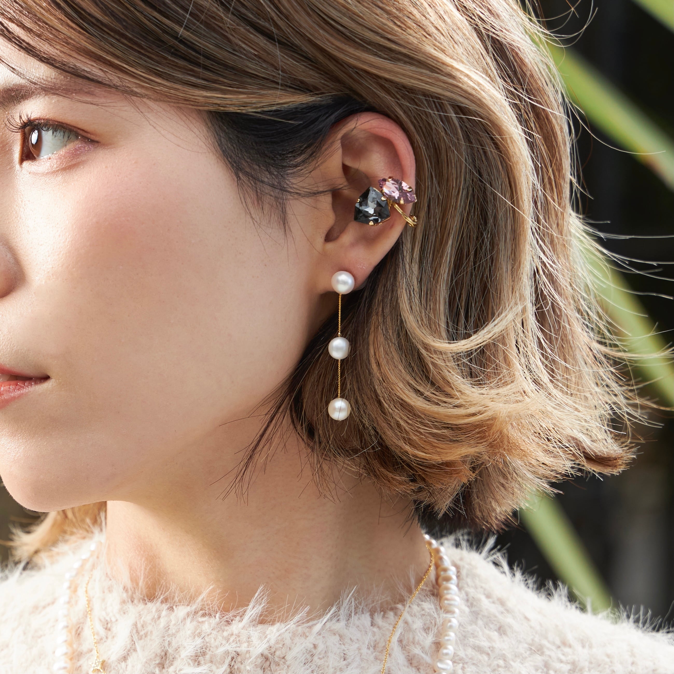 フェミニンな淡水パールが耳元で可憐に揺れる