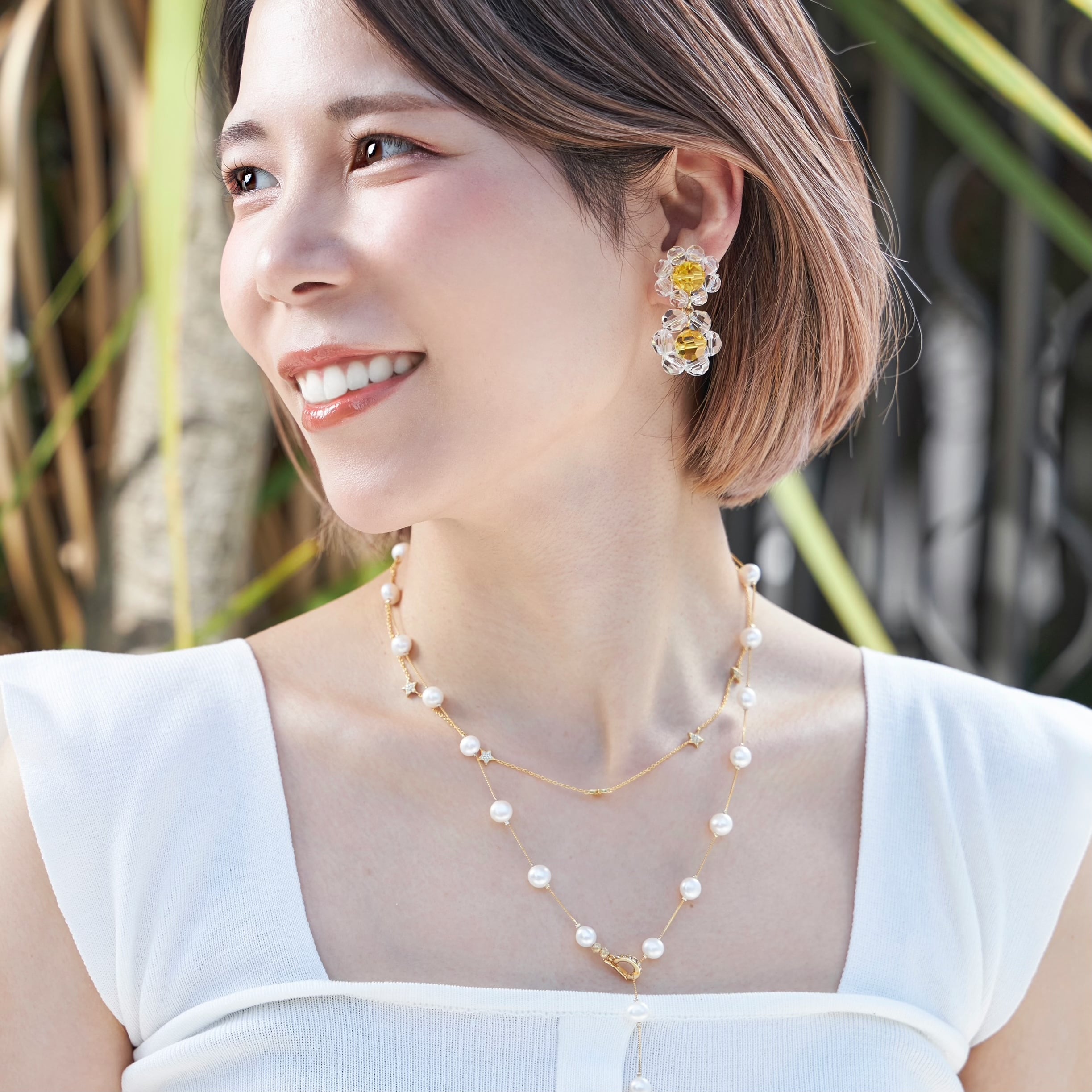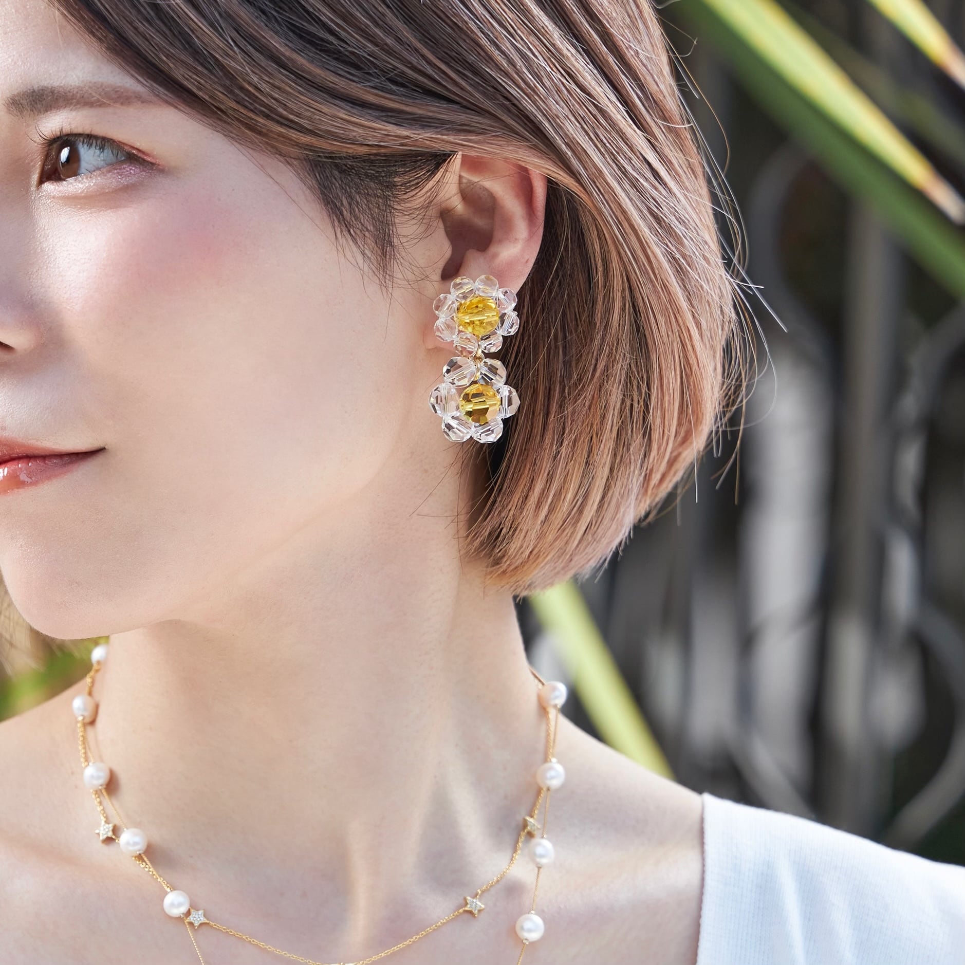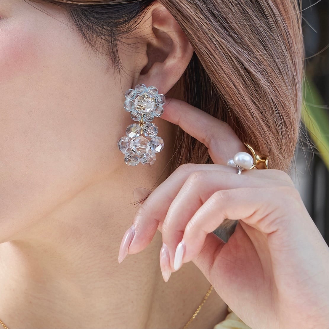 上下でクリスタルのサイズや色を変える事で
