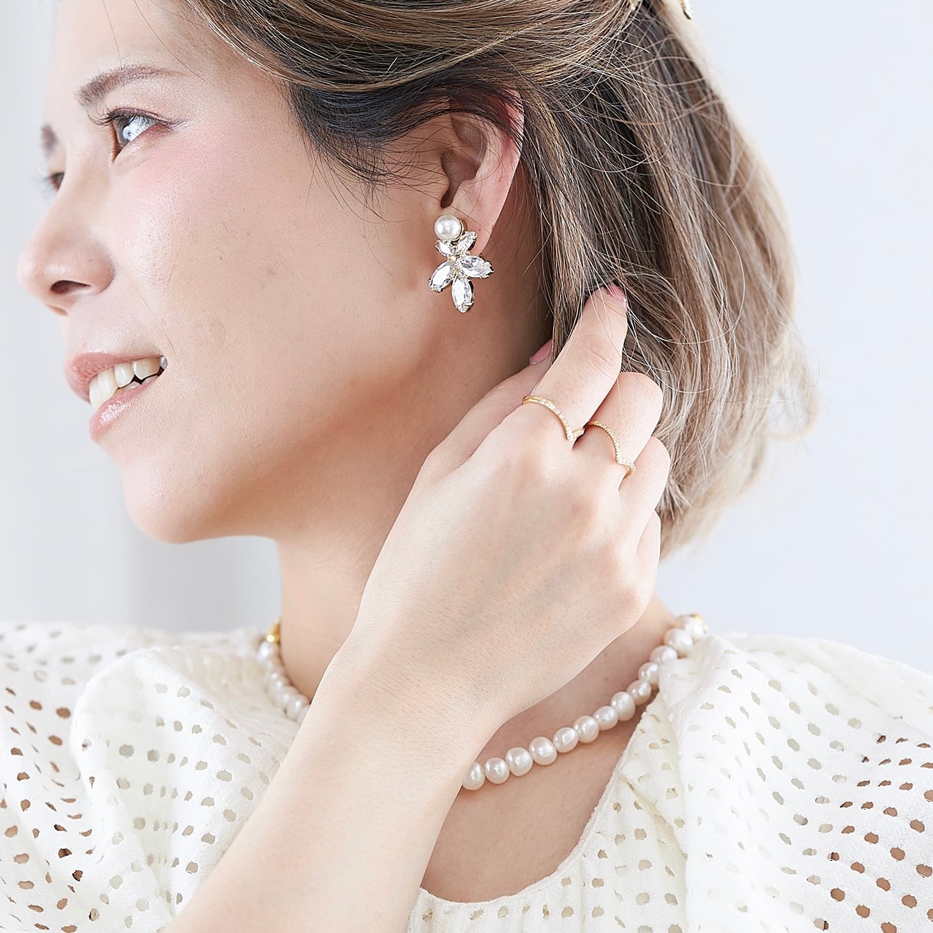ジルコニアの優しい煌めきとパールとの相性が◎