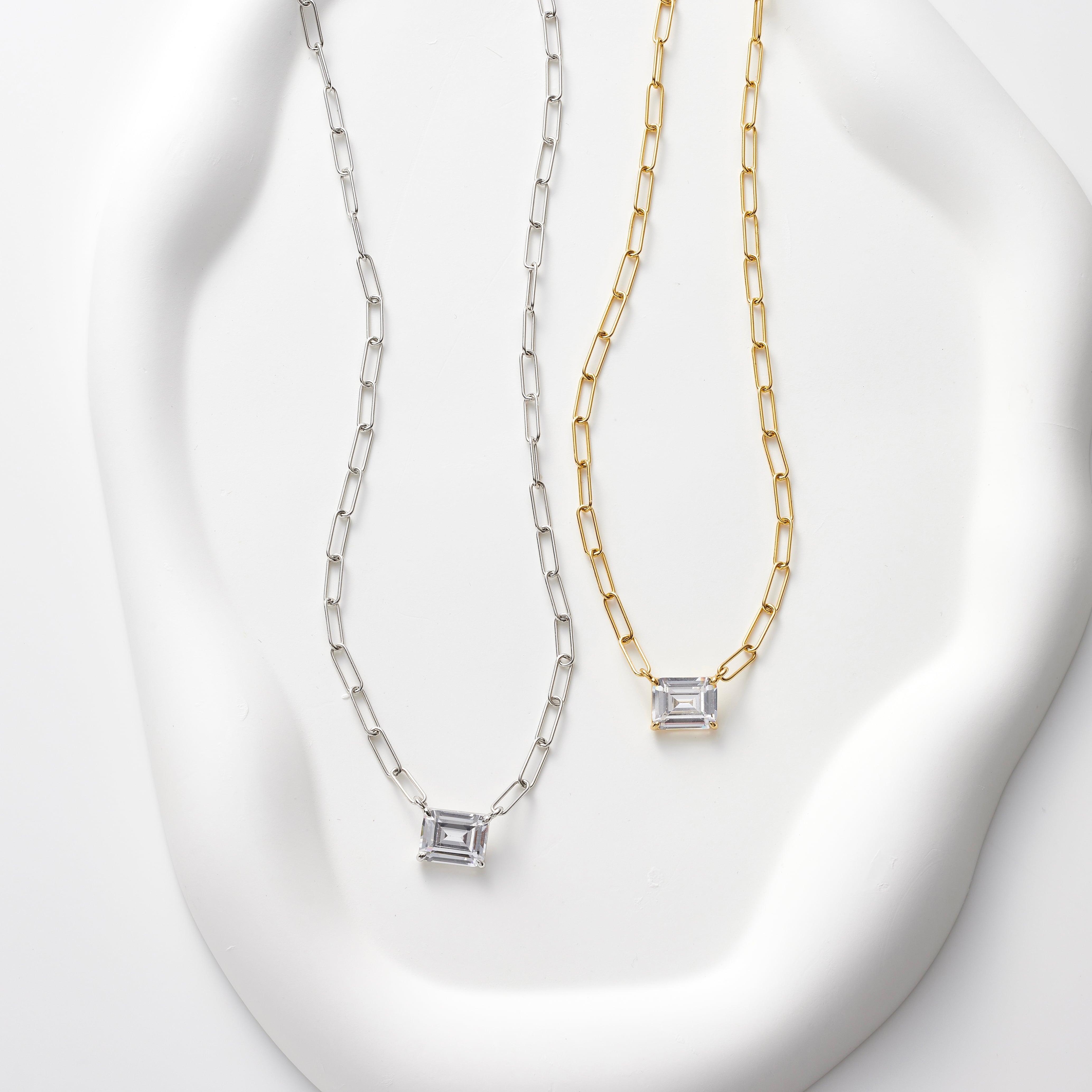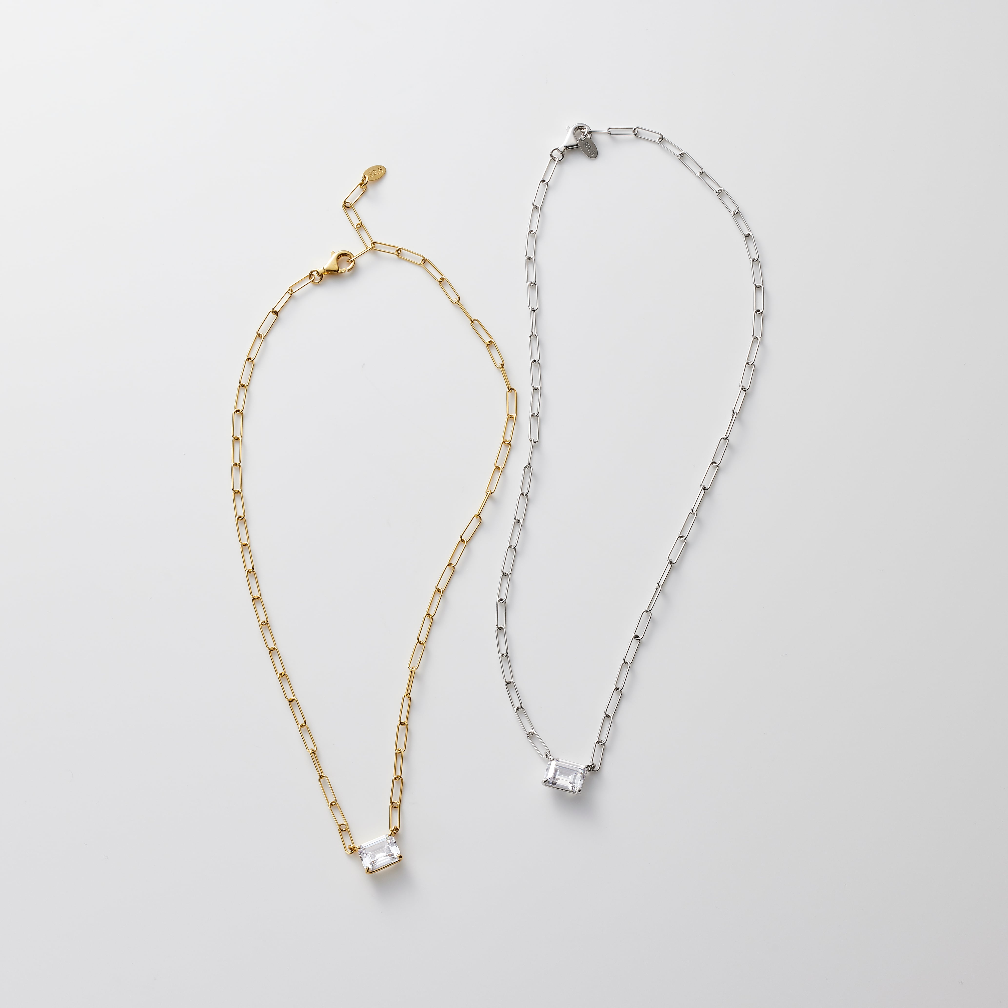 スクエアストーンが目を引くS925製チェーンネックレス。