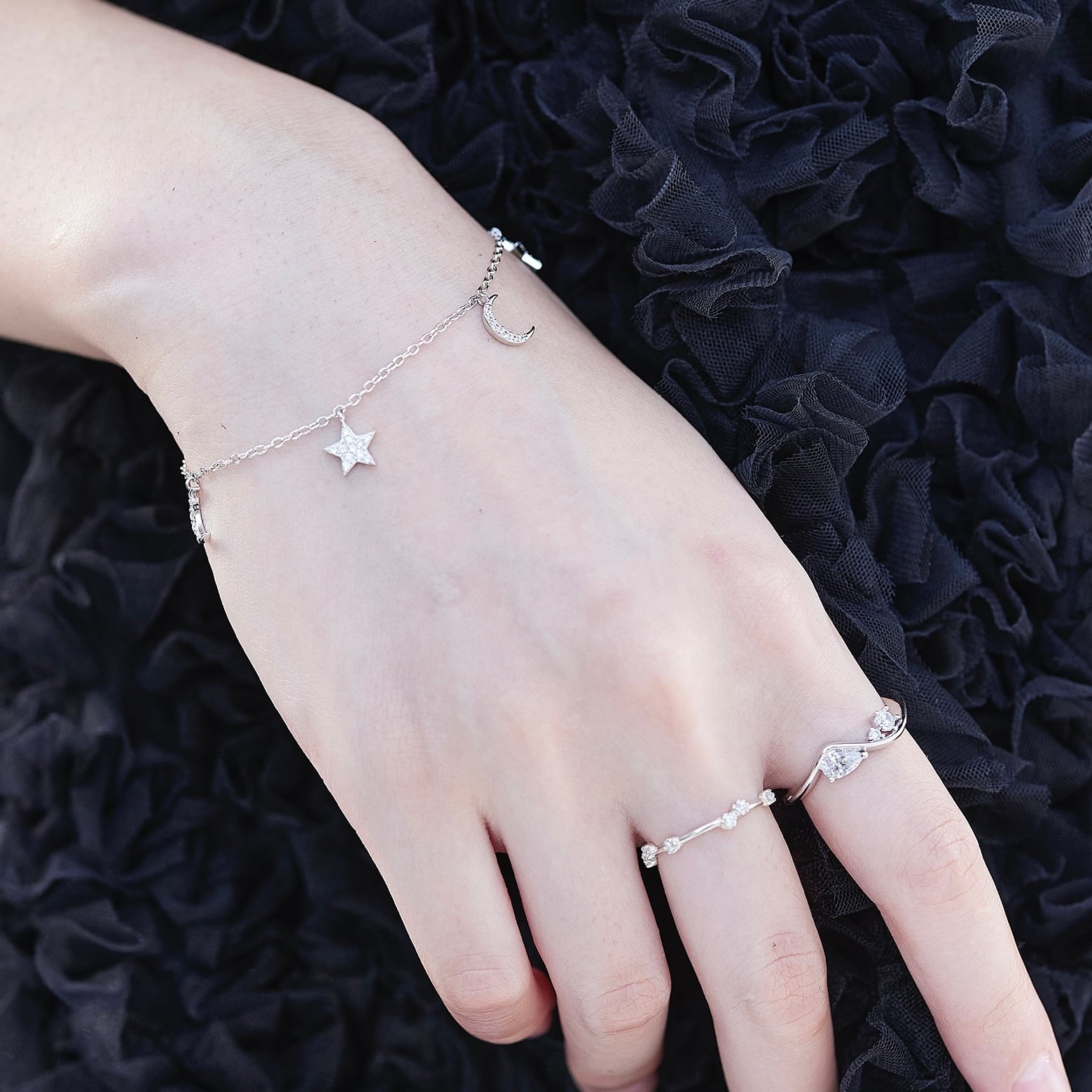 動くたび指先できらりと光る輝きが目を楽しませてくれます。