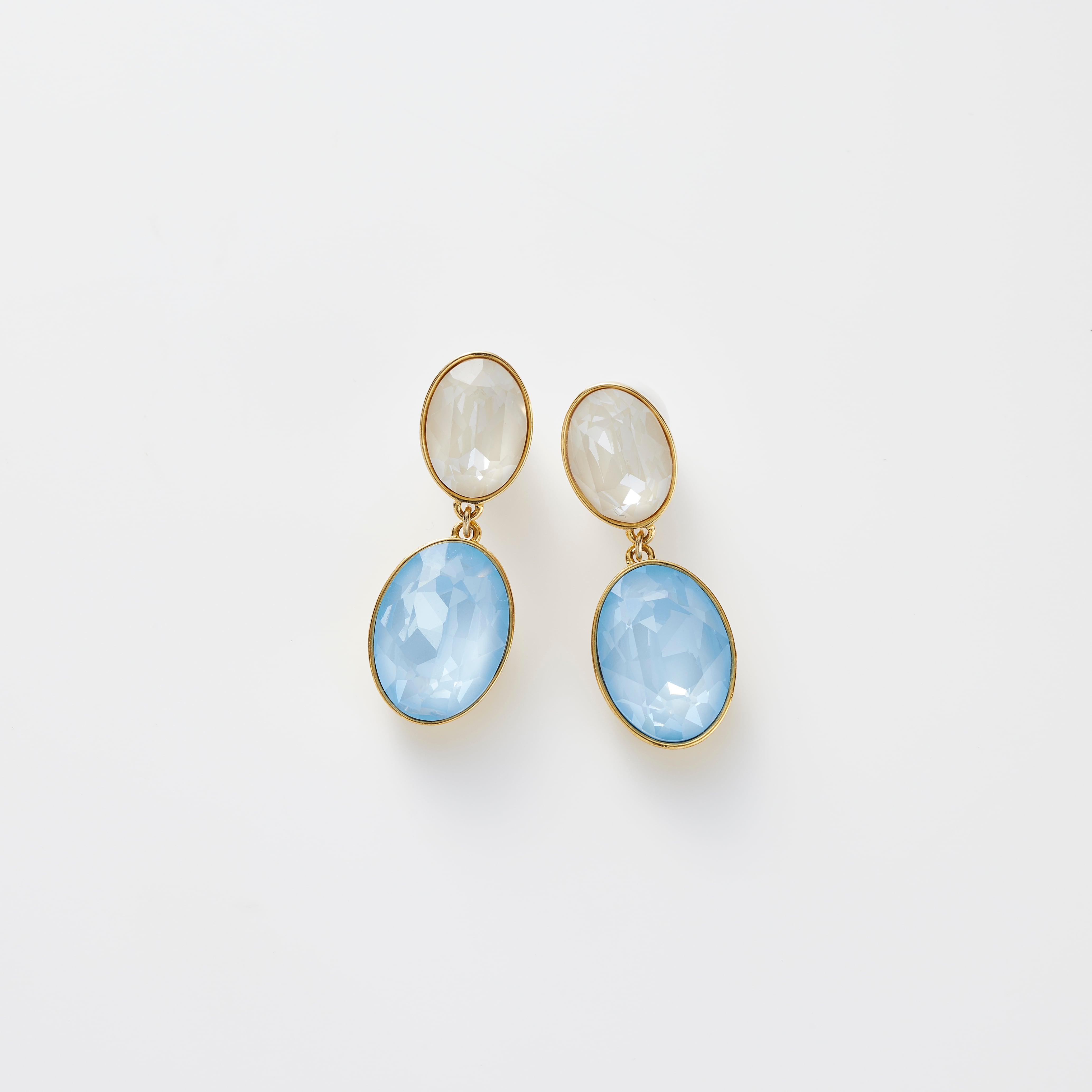 パッと目を引くホワイト&ブルーのクリスタルガラスは高品質なオーストリア産を使用。