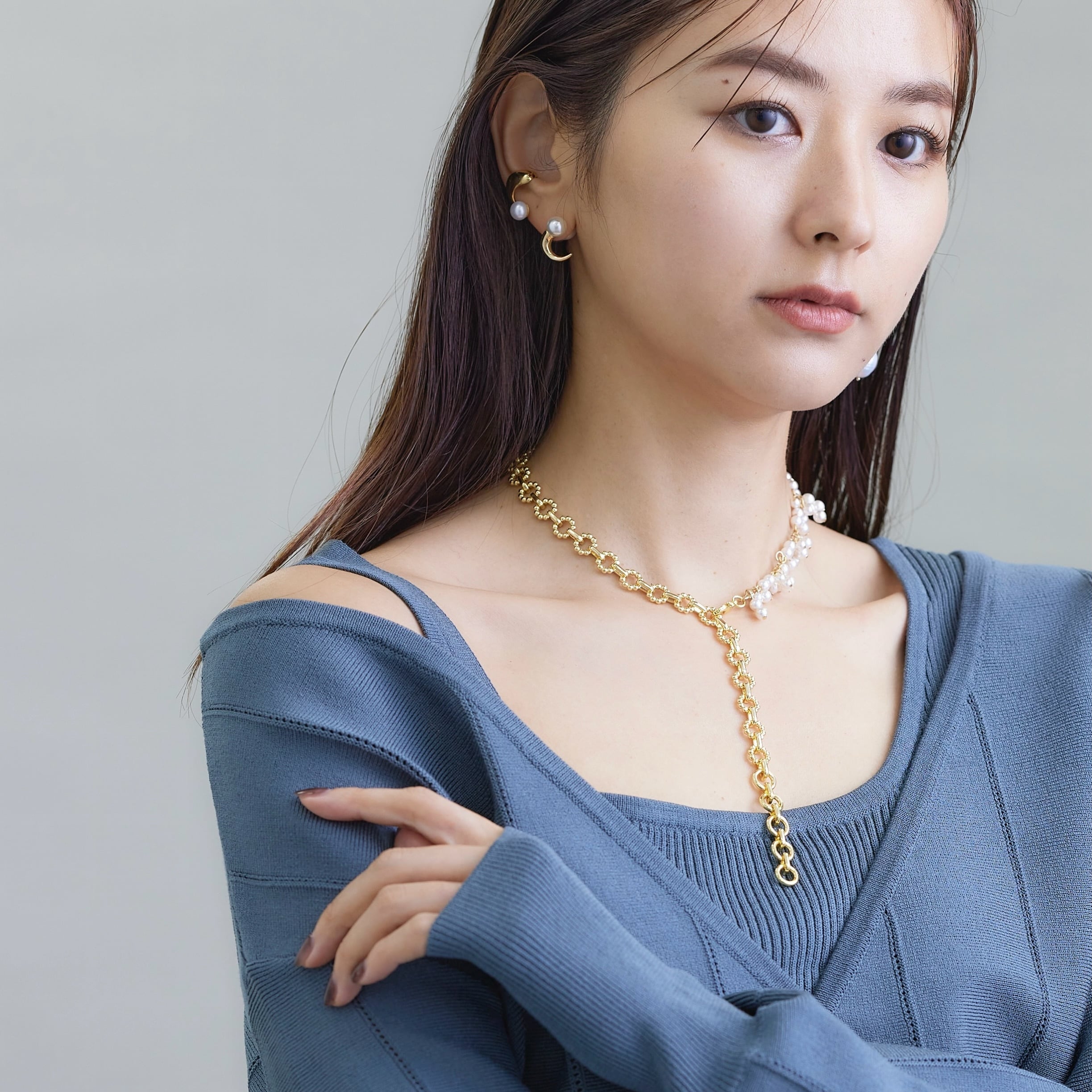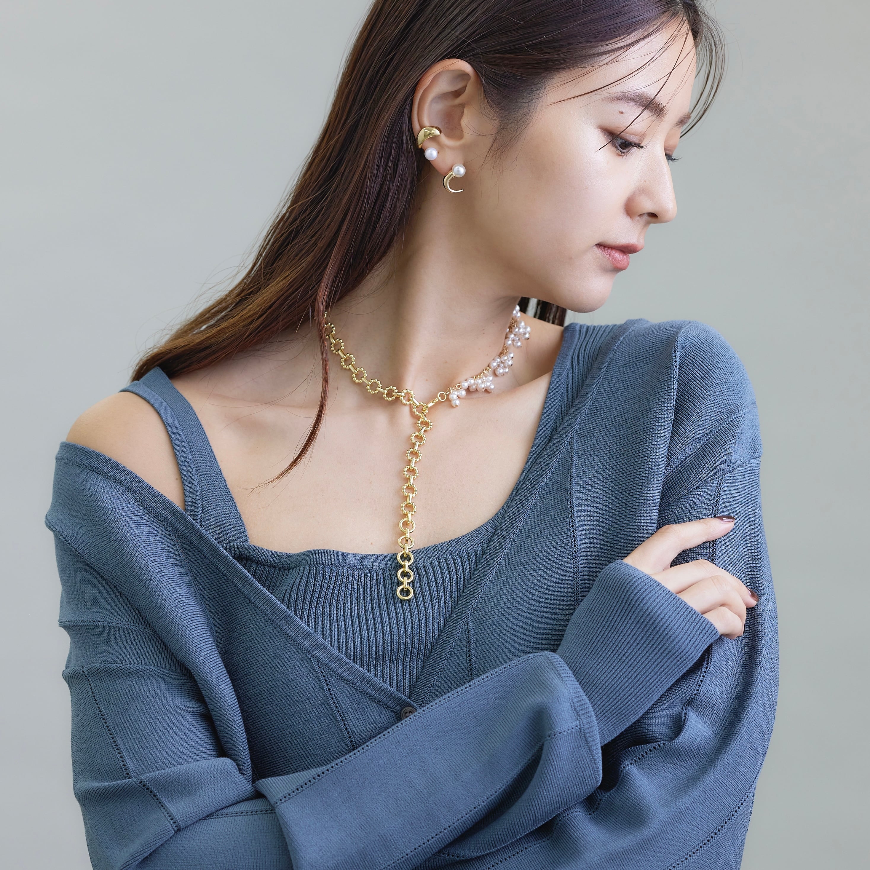 淡水パールがスタイルにエレガントモードな印象を添えてくれます。