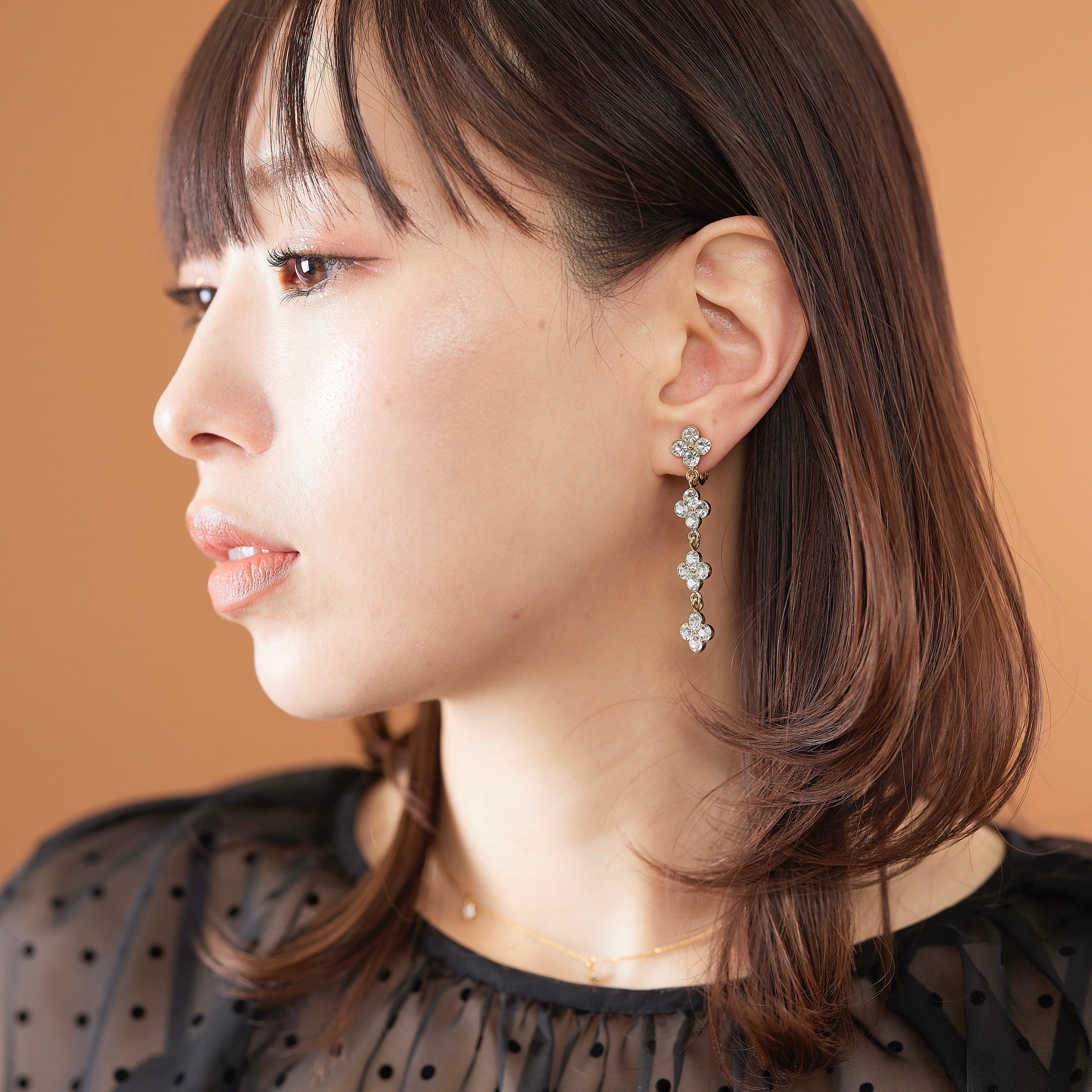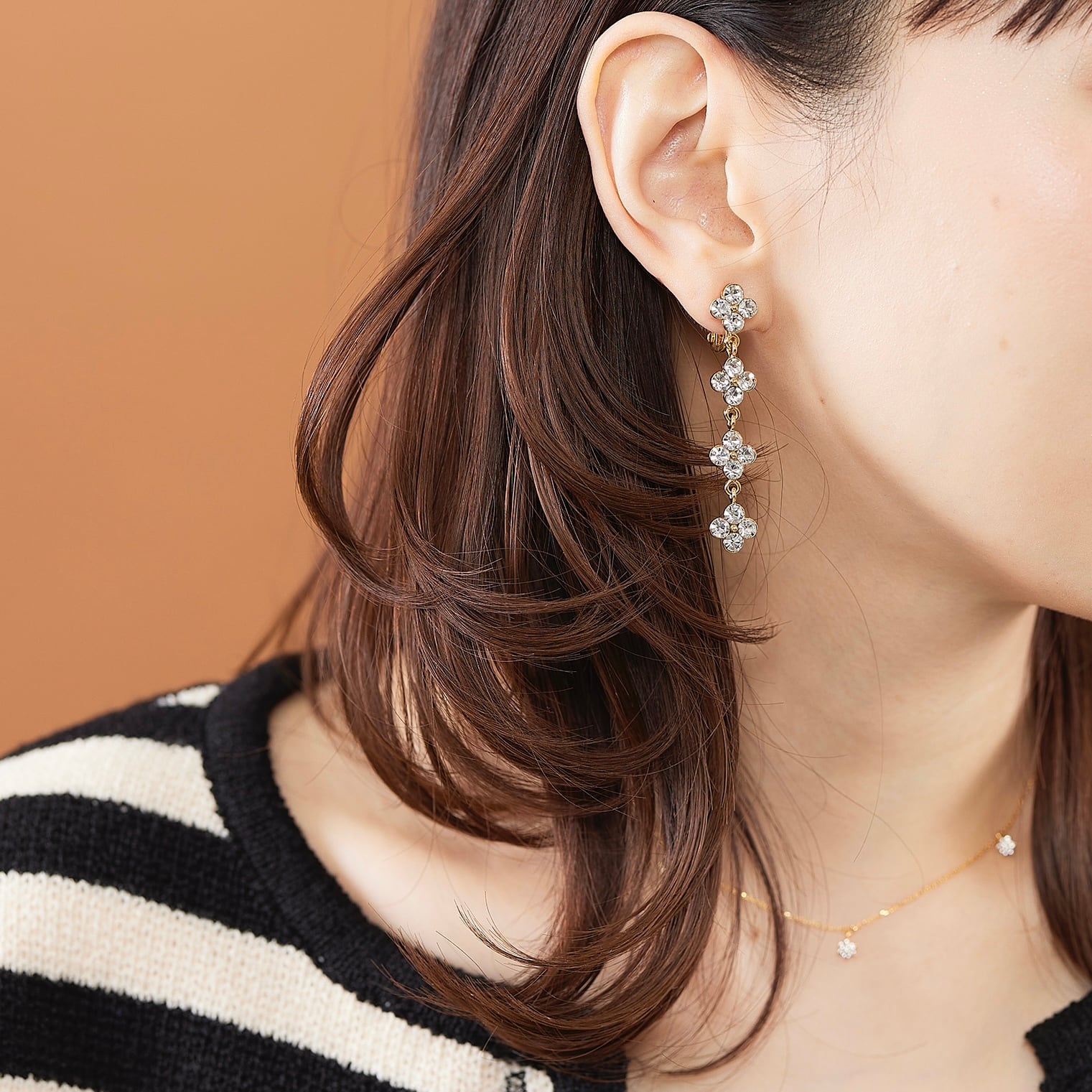 本製品のイヤリング金具は耳に優しいフィット感を実現する為、バネをつかわない製法でお作りしております。