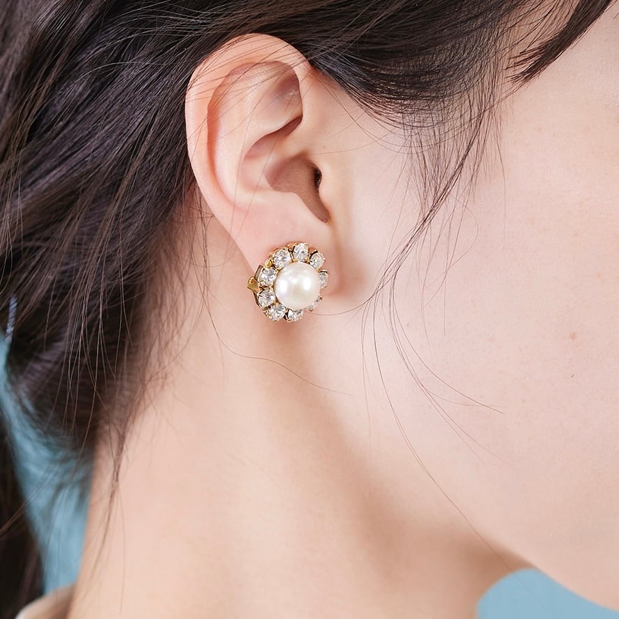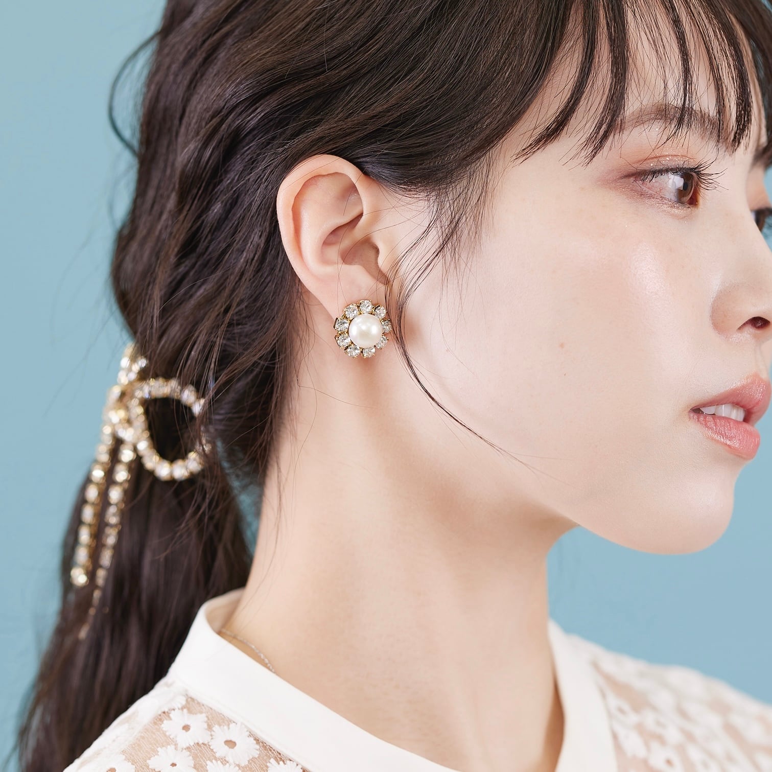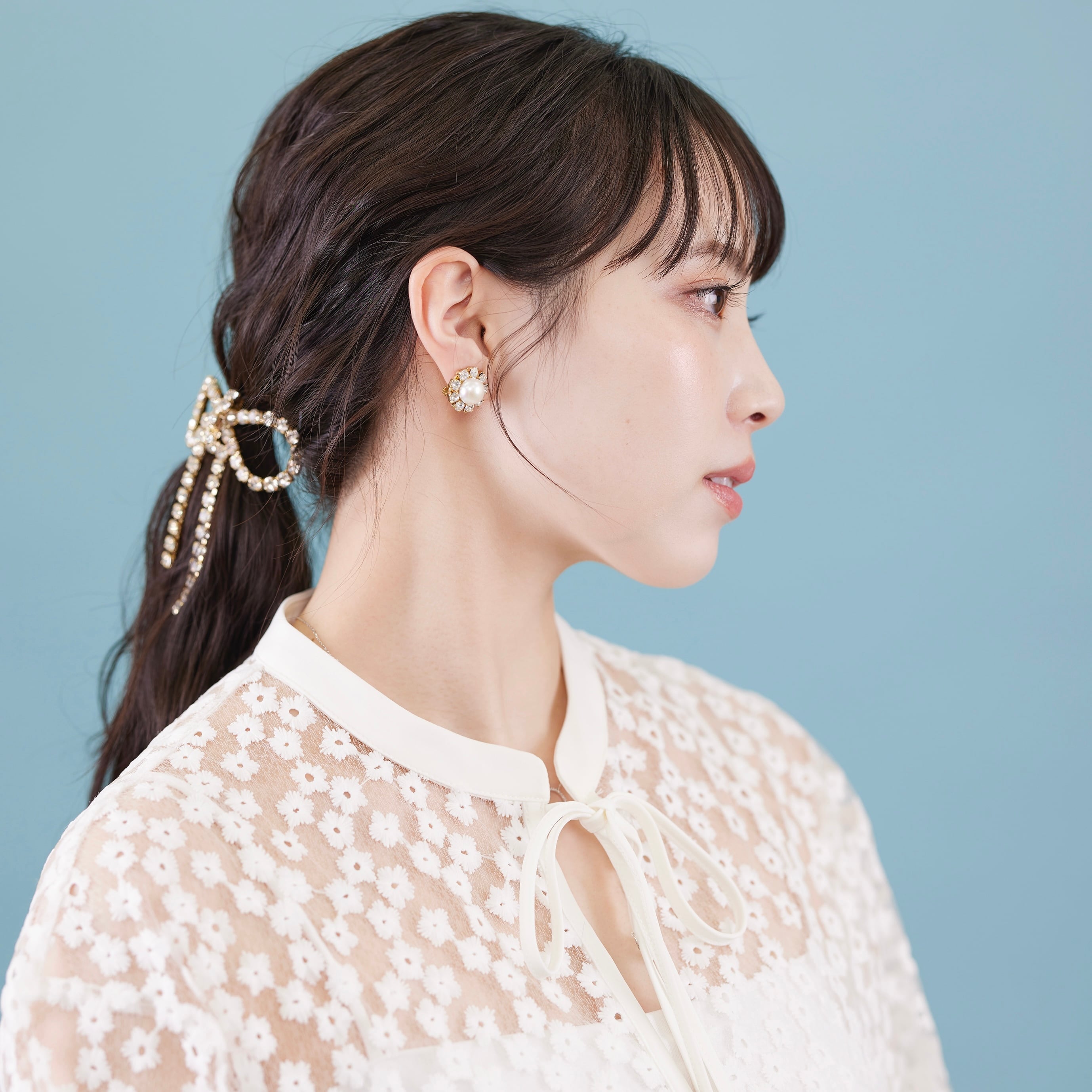イヤリングには痛くなりにくいと人気の、幅広タイプを使用。