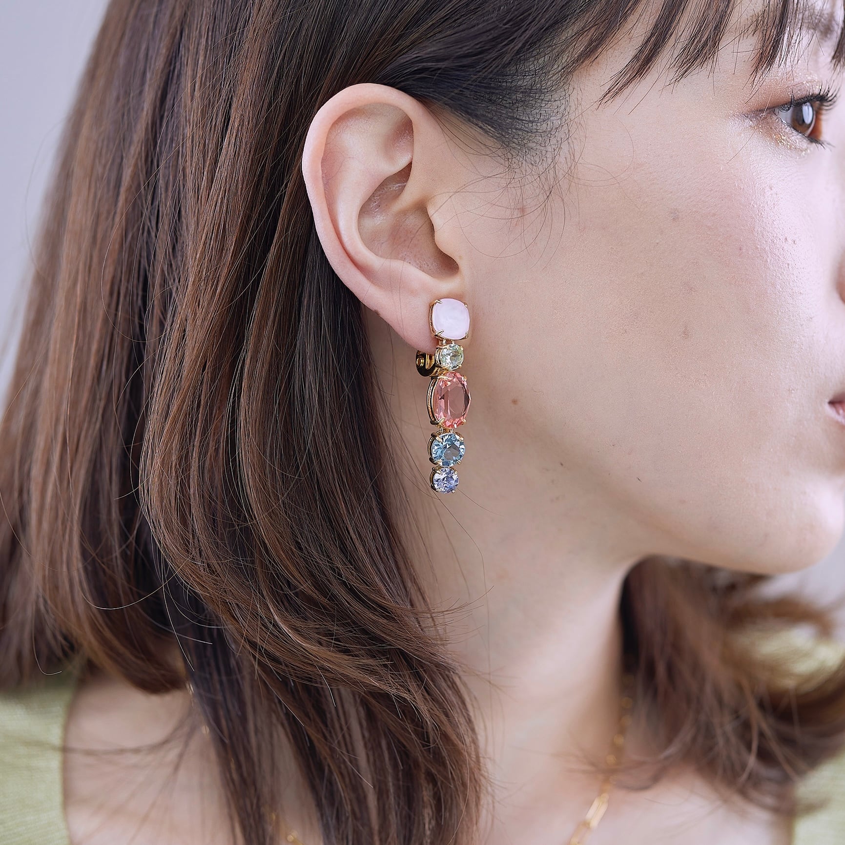 Earringには耳に負担の少ない開閉が調整できる金具・シリコンカバー使用している為、落ちにくくとっても優しい付け心地。